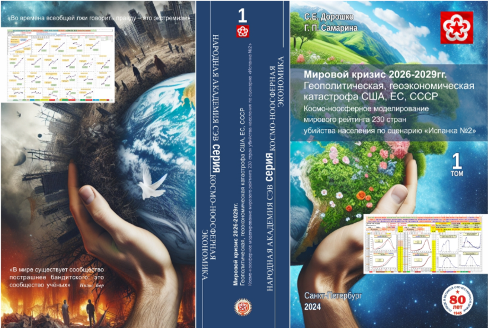 Монография 2024 года является продолжением монографий, в т.ч. предыдущей монографии: «Дорошко С.Е., Самарина Г.П. «Мировой кризис 2023-2025гг. Геополитическая, геоэкономическая катастрофа, уничтожение населения США, ЕС, СССР по сценариям «Испанка № 2» Надгосударственная Народная Академия СЭВ. Серия: Космо-ноосферная экономика».