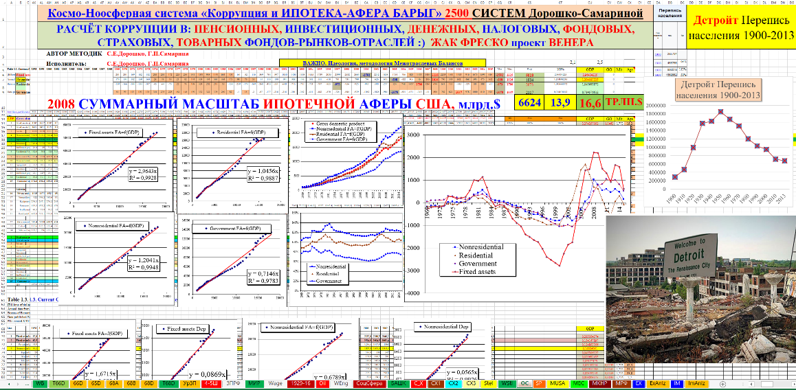 В рамках космо-ноосферных систем Дорошко-Самариной несложно доказывается, что масштабы хищений и неэффективного управления на уровне экономики США ничтожно малы по сравнению с масштабами хищений и военных преступлений во время регулярных мировых кризисов. Например, во время знаменитого мирового ипотечного кризиса, который «странным образом» был инициирован в Америке. По прогнозам и нейронным моделям мирового кризиса 2008–2009гг. С.Е.Дорошко и Г.П.Самариной он приведёт и привёл к прямым потерям 6-8 трлн долларов США.