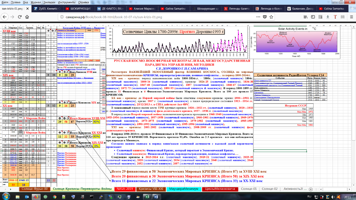 В процессе исследований перед С.Е.Дорошко, Г.П.Самариной стоит проблема выбора названия серии монографий, связанных с очередным мировым кризисом 2026–2029гг. в рамках космо-ноосферных прогнозов авторов от 1993г. https://economics-21.narod.ru/prog/riskanaliz/sun-analiz.html: