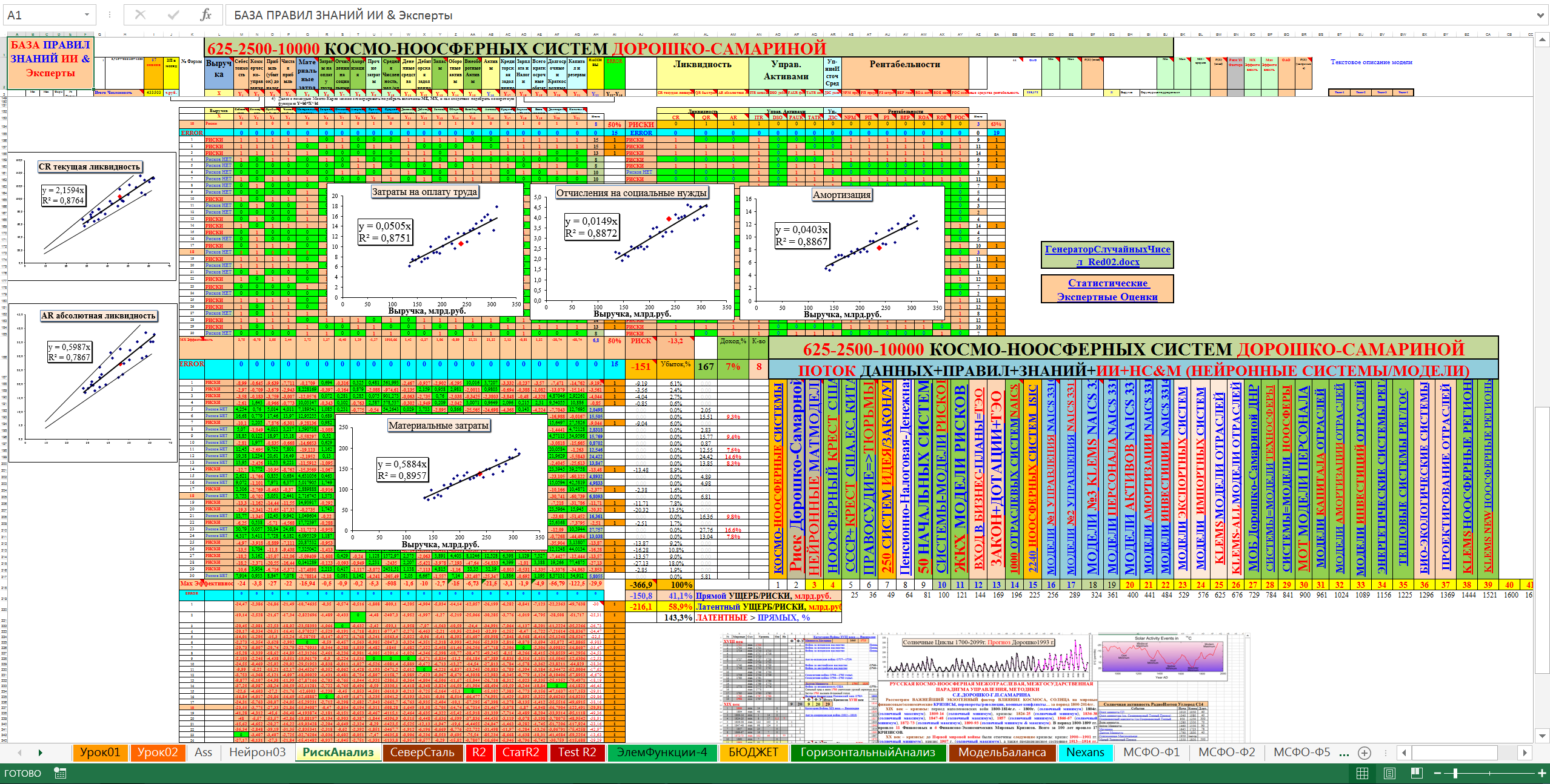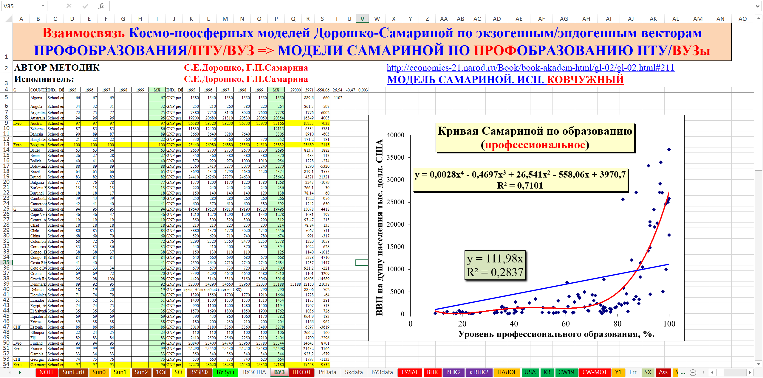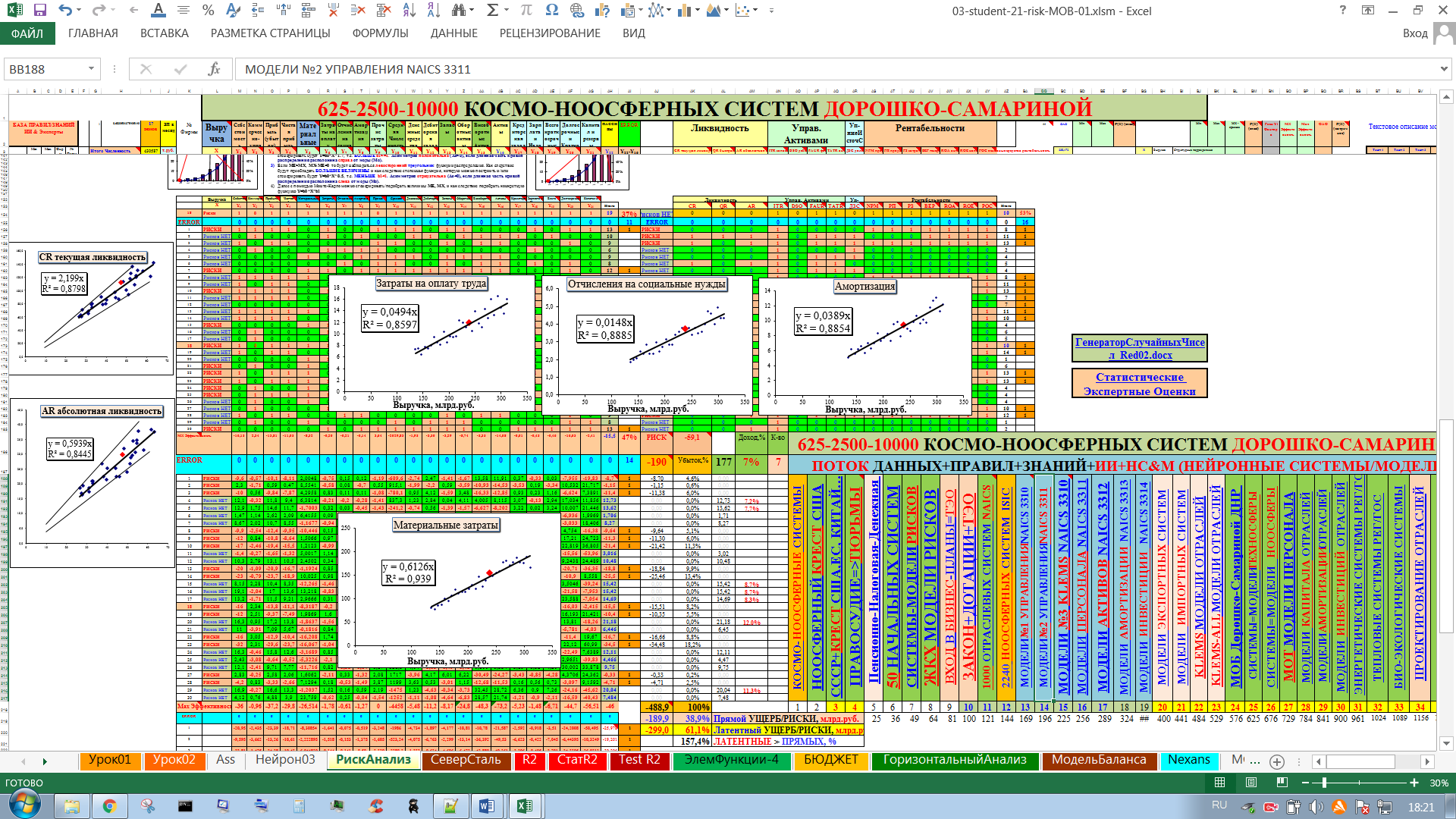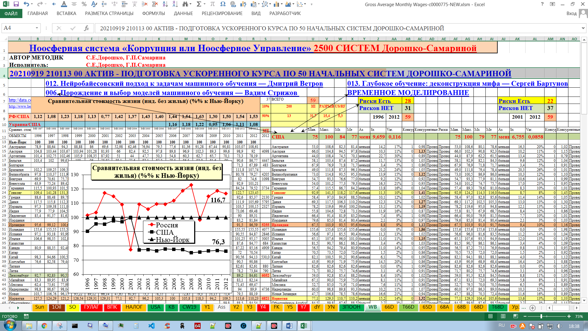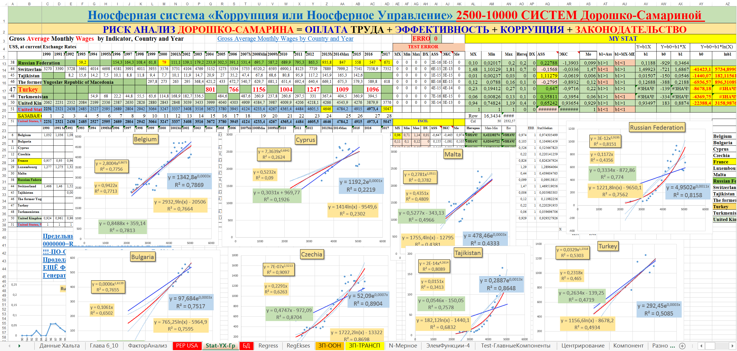 В 1993-1998гг. подготовлены методики анализа рисков, эффективности, конкурентных позиций исследуемых предприятий любых отраслей, государств-членов ООН, нейронных космо-ноосферных KLEMS моделей Дорошко-Самариной в рамках МСФО, ИСО31000, KLEMS СНС ООН. Материал подготовили лингвистические роботы с элементами ИИ, разработанные С.Е.Дорошко, Г.П.Самариной. Материалы были переданы Фонду Евразия USAID ЦРУ США Крису Баркиджиа, Фонд Сороса USAID А.В.Кобаку в 1999 г. с указанием о готовящихся сионистских, фашистских государственных переворотов в США, ЕС, в т. ч. Франции и Великобритании (см. письма).