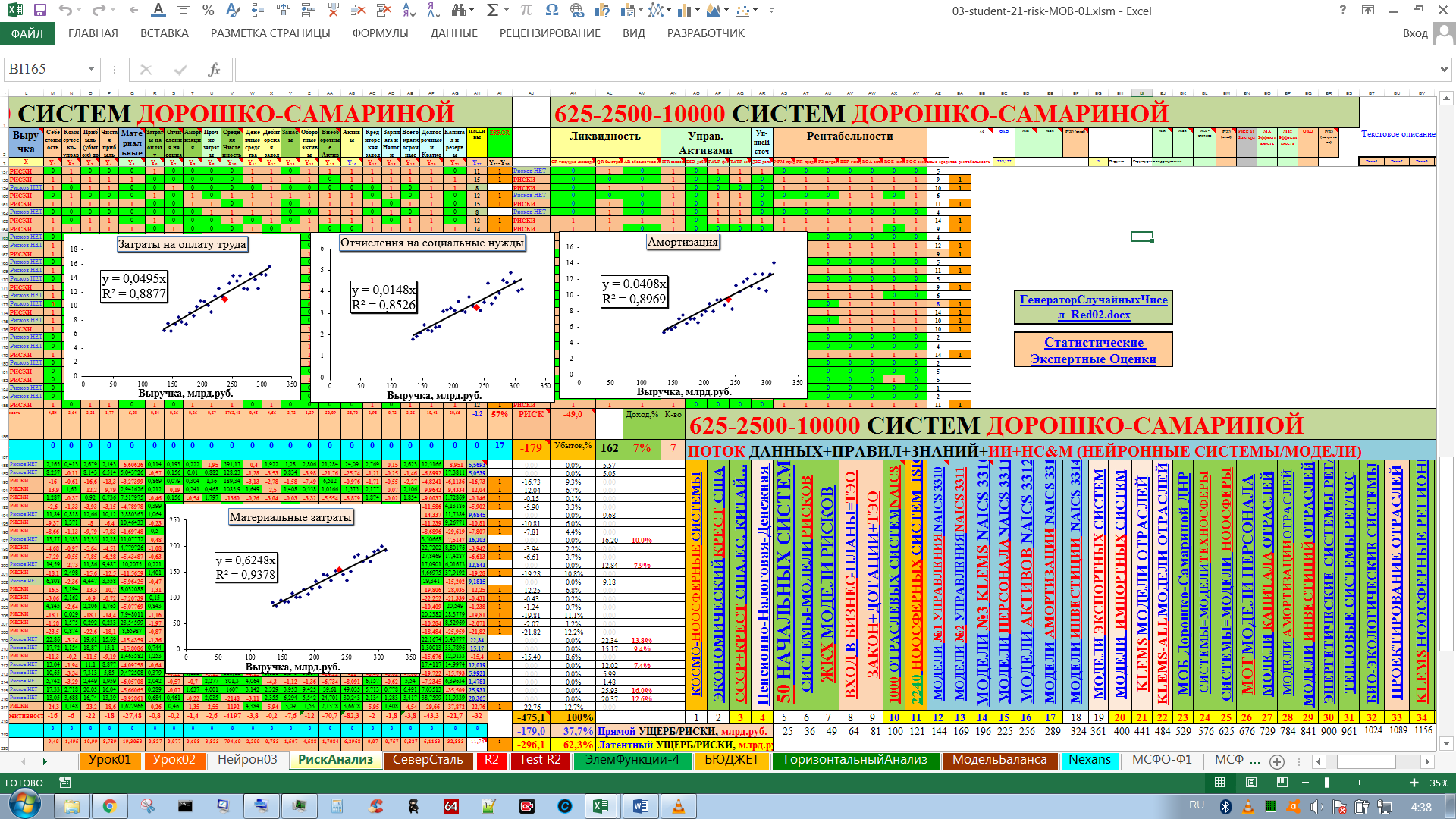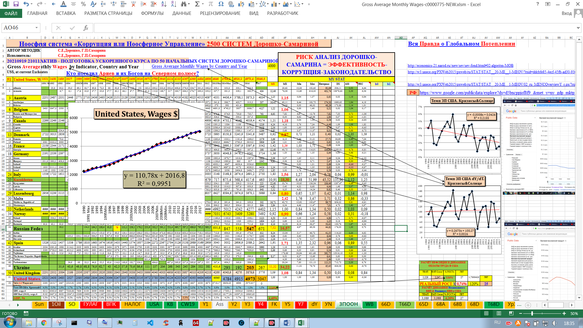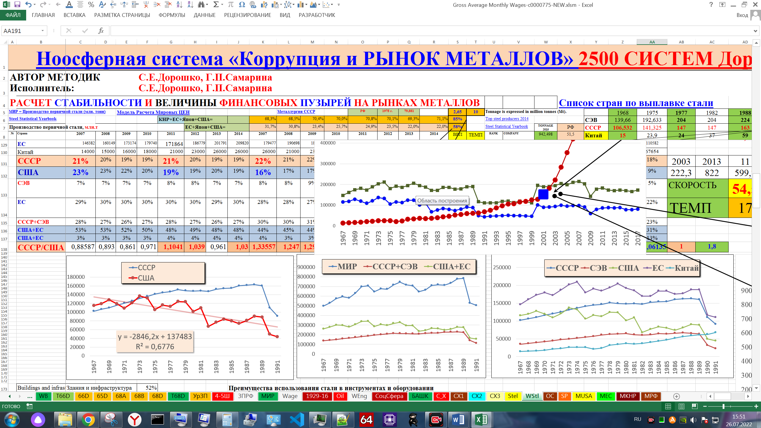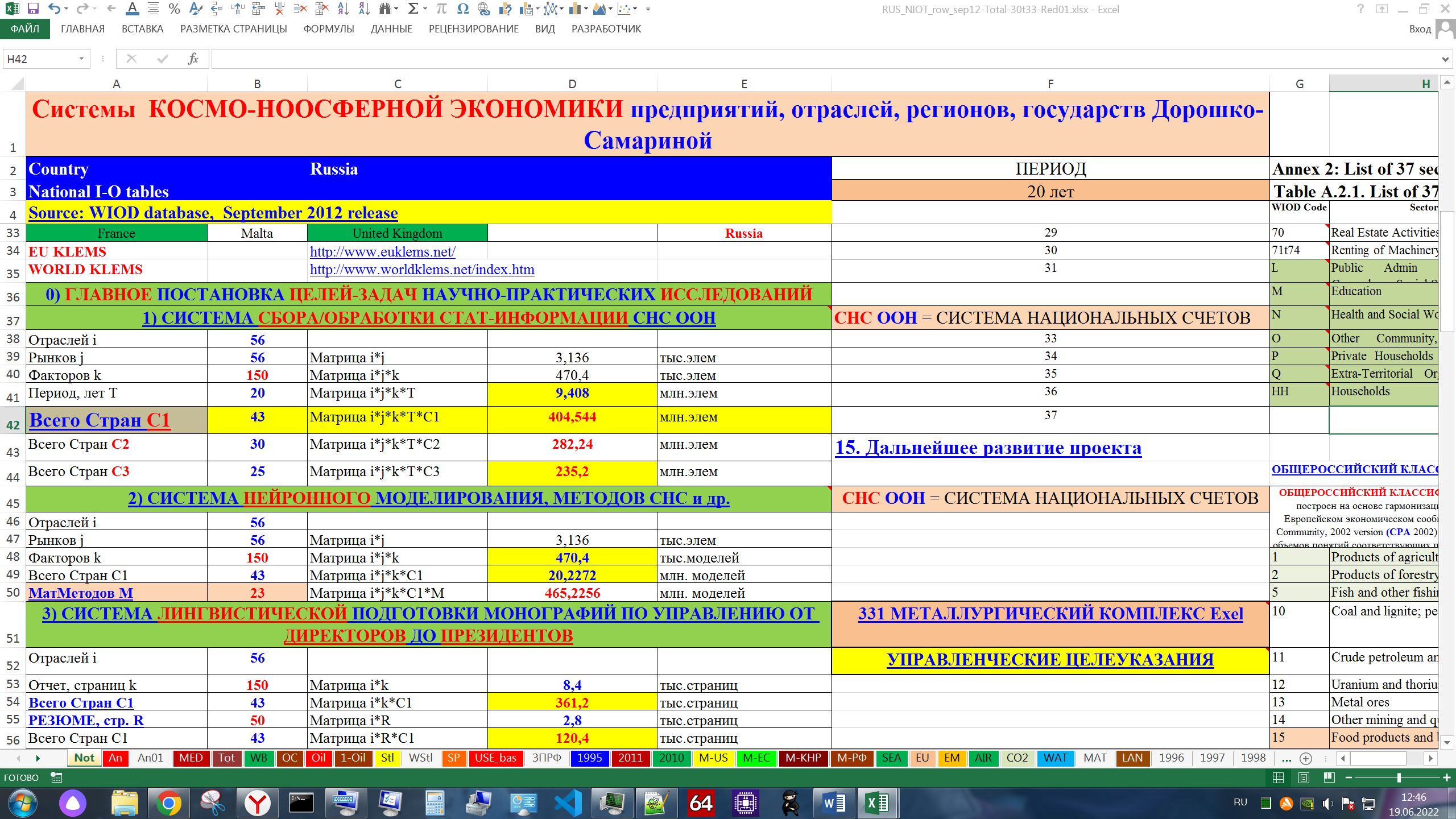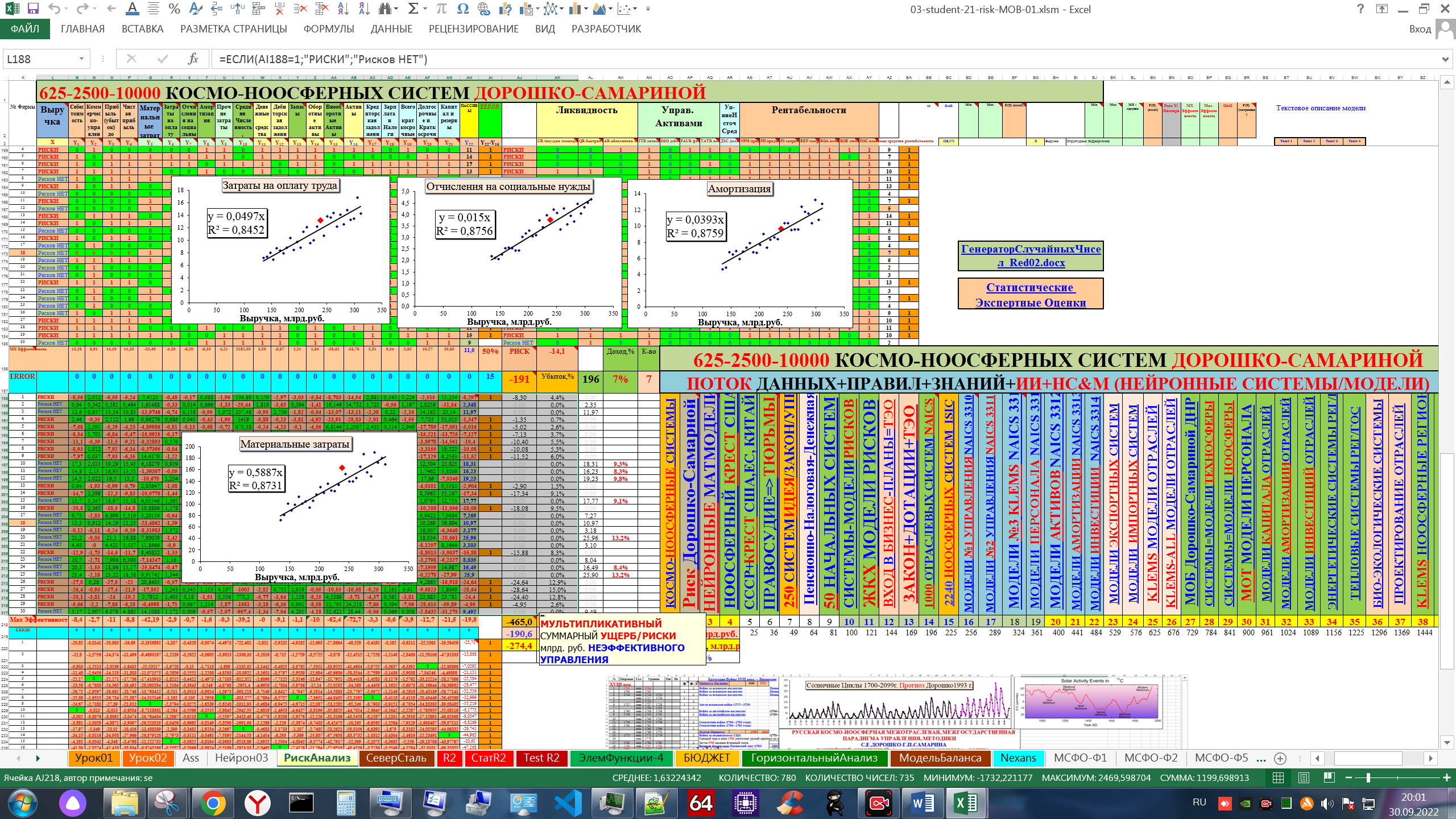 В 1993-1998гг. подготовлены методики анализа рисков, эффективности, конкурентных позиций исследуемых предприятий любых отраслей, государств-членов ООН, нейронных космо-ноосферных KLEMS моделей Дорошко-Самариной в рамках МСФО, ИСО31000, KLEMS СНС ООН. Материал подготовили лингвистические роботы с элементами ИИ, разработанные С.Е.Дорошко, Г.П.Самариной. Материалы были переданы Фонду Евразия USAID ЦРУ США Крису Баркиджиа, Фонд Сороса USAID А.В.Кобаку в 1999 г. с указанием о готовящихся сионистских, фашистских государственных переворотов в США, ЕС, в т. ч. Франции и Великобритании (см. письма).