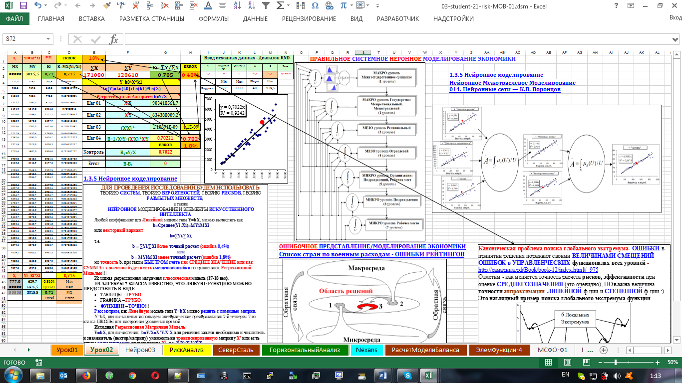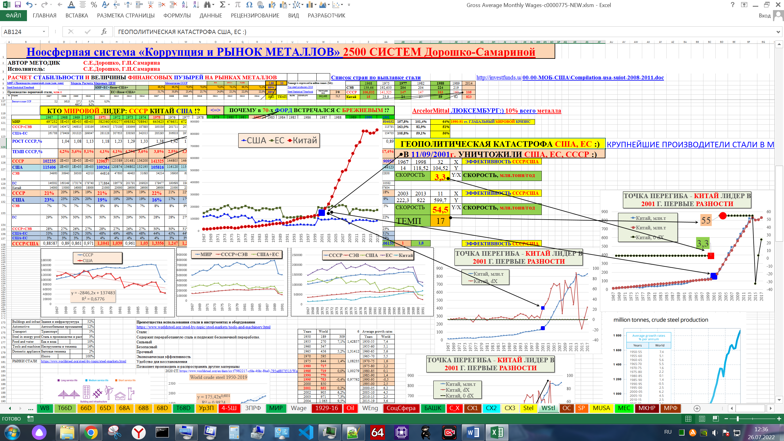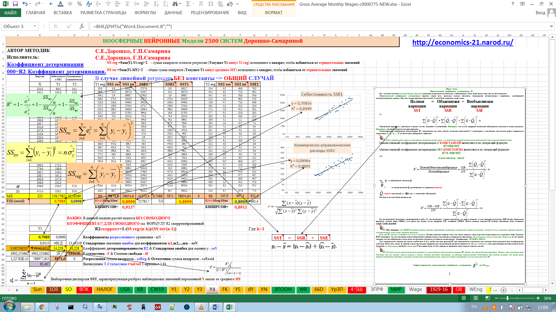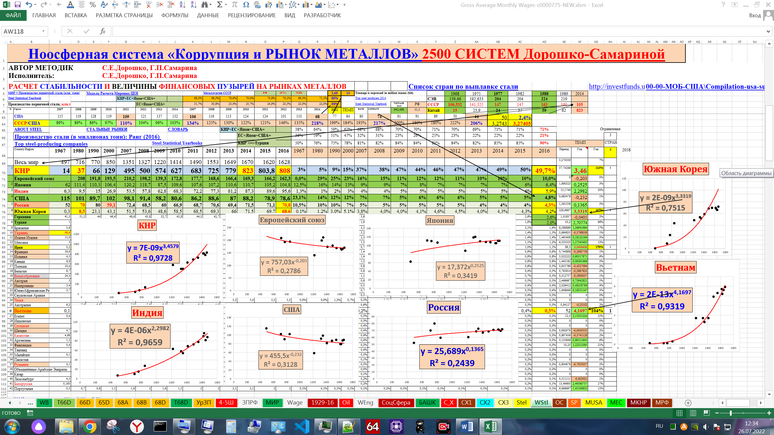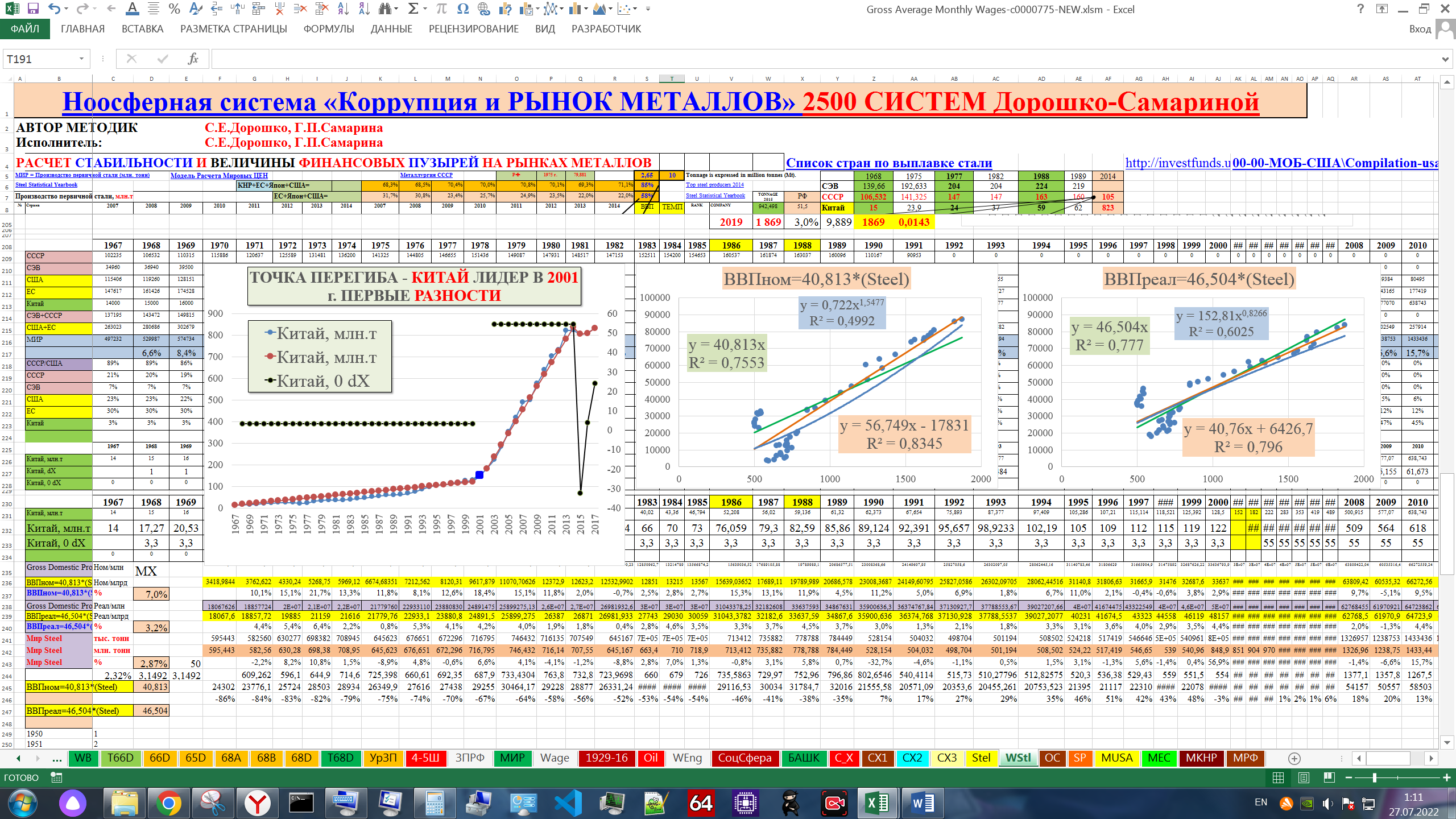 В 1993-1998гг. подготовлены методики анализа рисков, эффективности, конкурентных позиций исследуемых предприятий любых отраслей, государств-членов ООН, нейронных космо-ноосферных KLEMS моделей Дорошко-Самариной в рамках МСФО, ИСО31000, KLEMS СНС ООН. Материал подготовили лингвистические роботы с элементами ИИ, разработанные С.Е.Дорошко, Г.П.Самариной. Материалы были переданы Фонду Евразия USAID ЦРУ США Крису Баркиджиа, Фонд Сороса USAID А.В.Кобаку в 1999 г. с указанием о готовящихся сионистских, фашистских государственных переворотов в США, ЕС, в т. ч. Франции и Великобритании (см. письма).