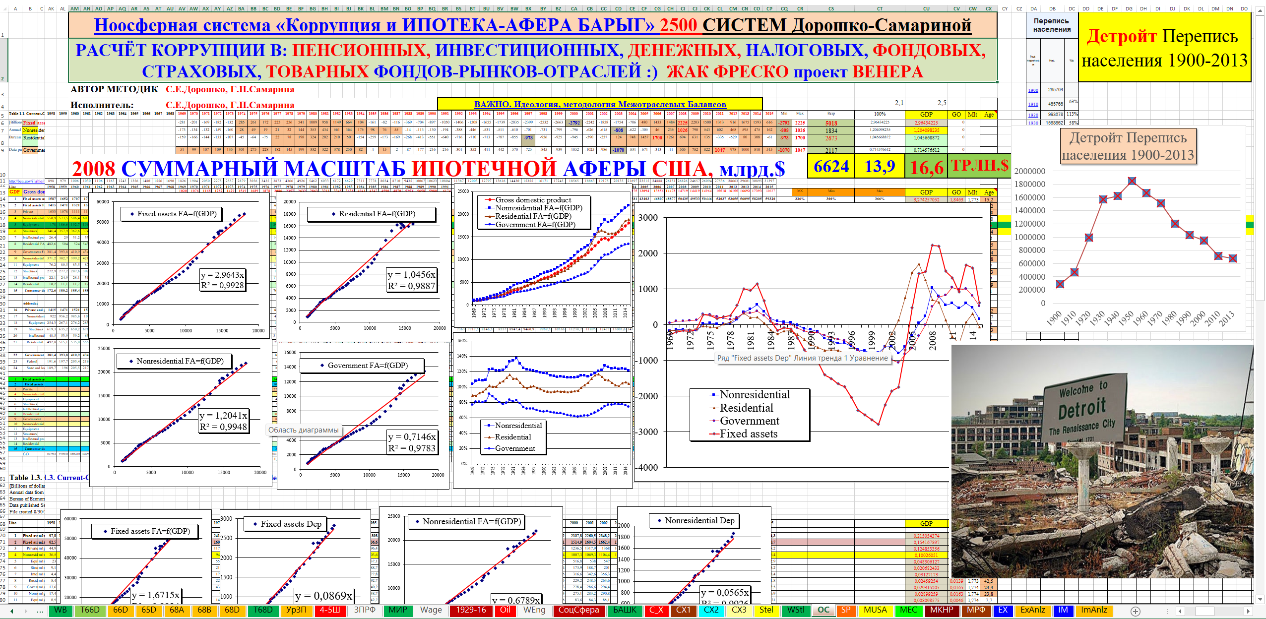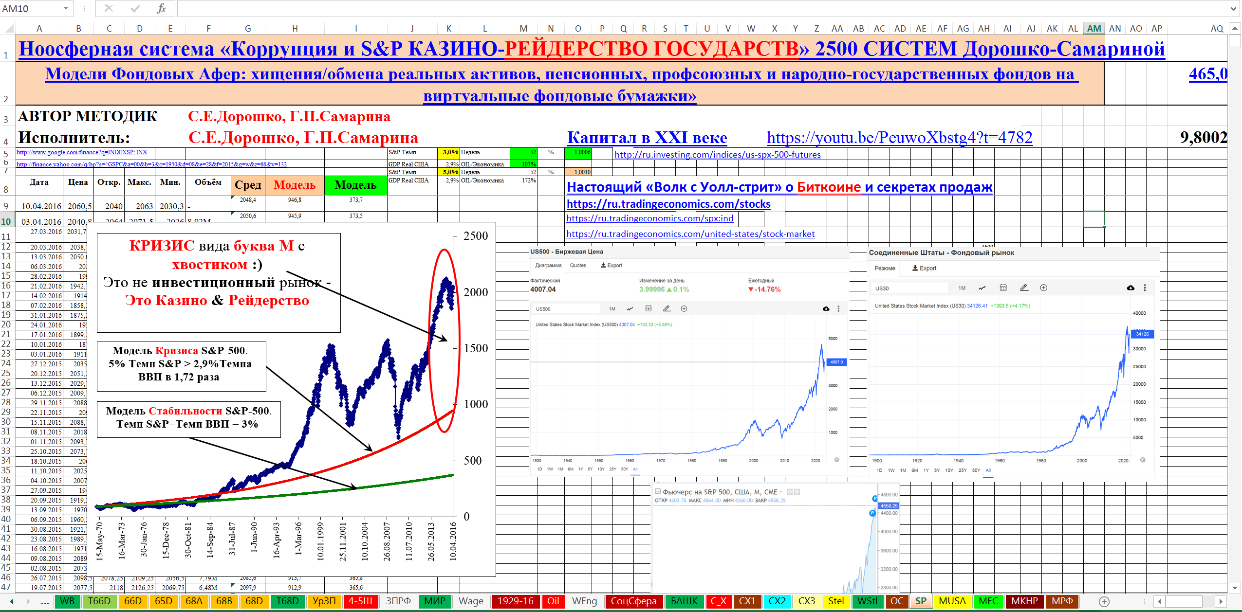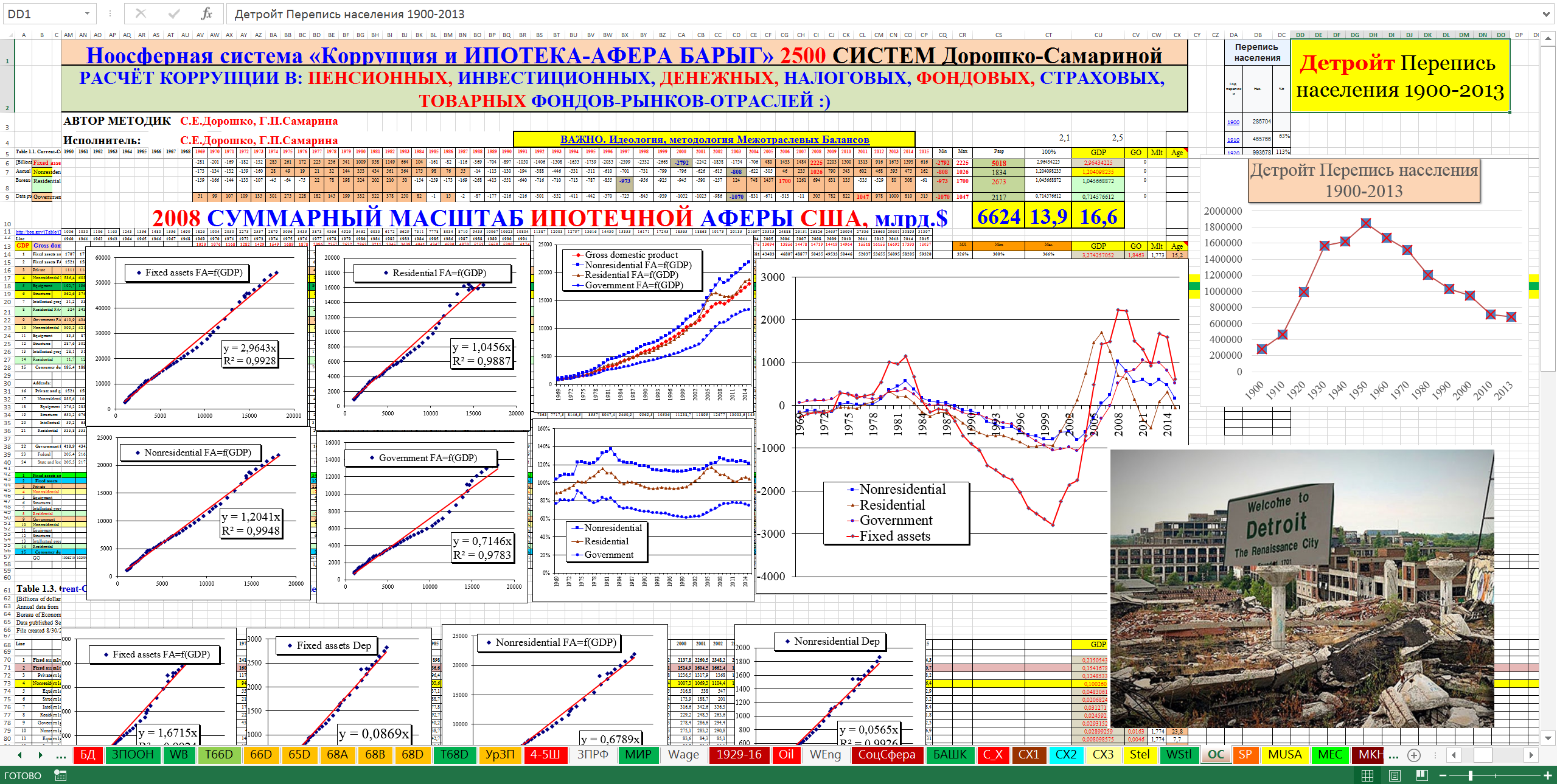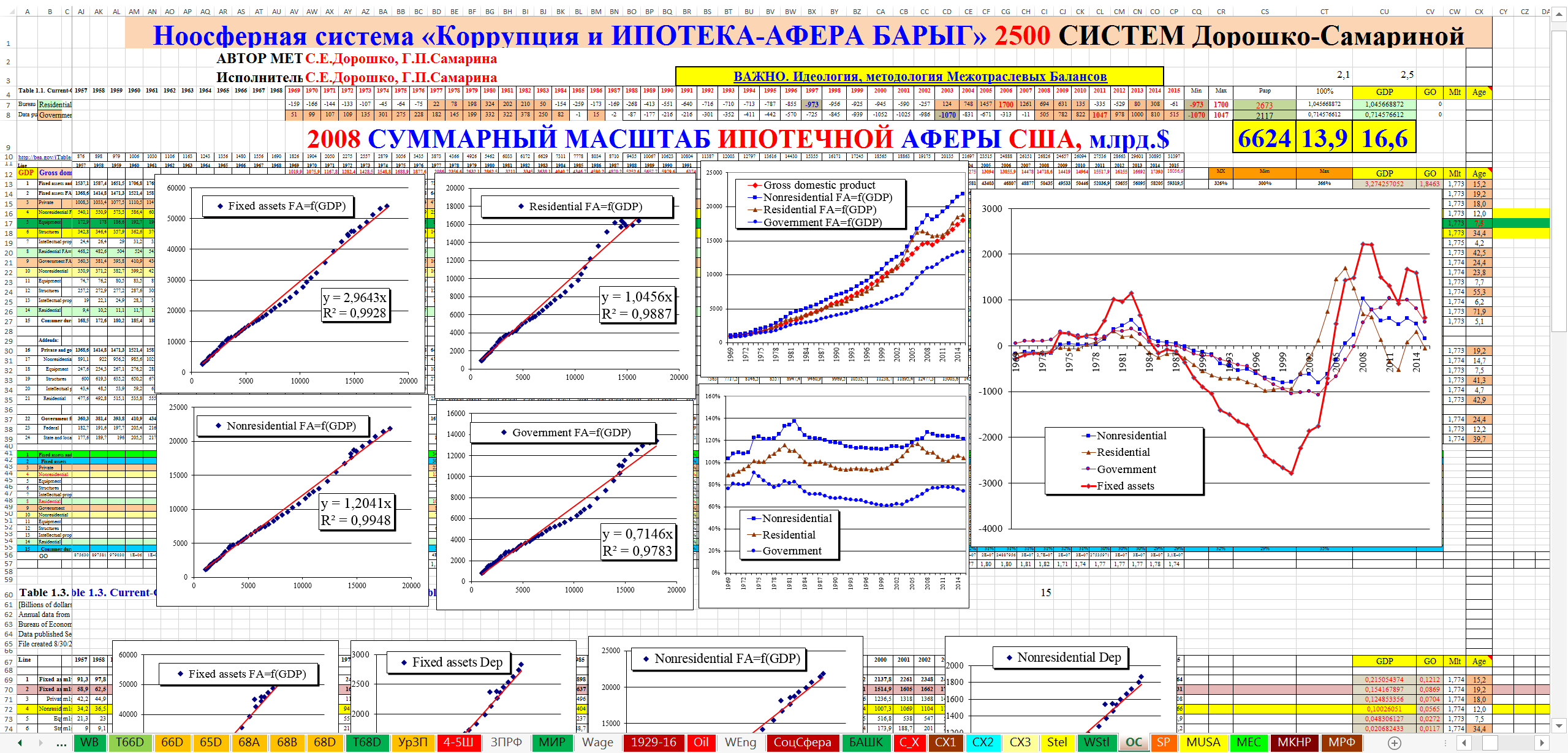 В рамках космо-ноосферных систем Дорошко-Самариной несложно доказывается, что масштабы хищений и неэффективного управления на уровне экономики США ничтожно малы по сравнению с масштабами хищений и военных преступлений во время регулярных мировых кризисов. Например, во время знаменитого мирового ипотечного кризиса, который «странным образом» был инициирован в Америке по расчётам С.Е.Дорошко и Г.П.Самариной привёл к потерям 6-8 трлн долларов США.