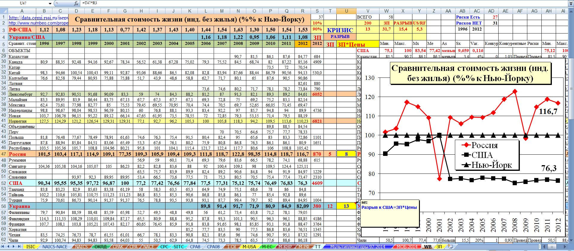 Для этого принимаем среднемесячную заработную плату в США за базовый показатель или как условно 100% показатель: