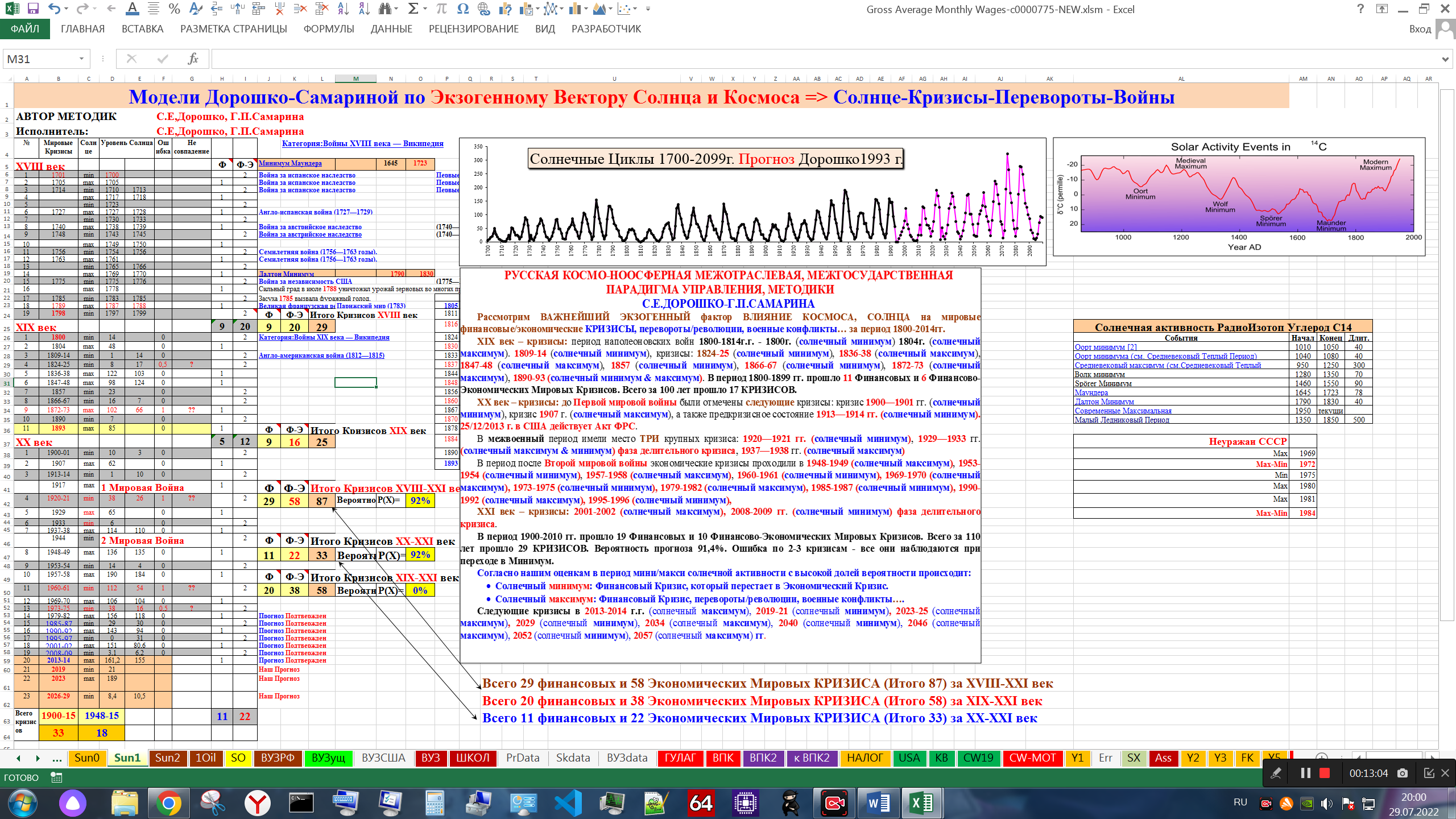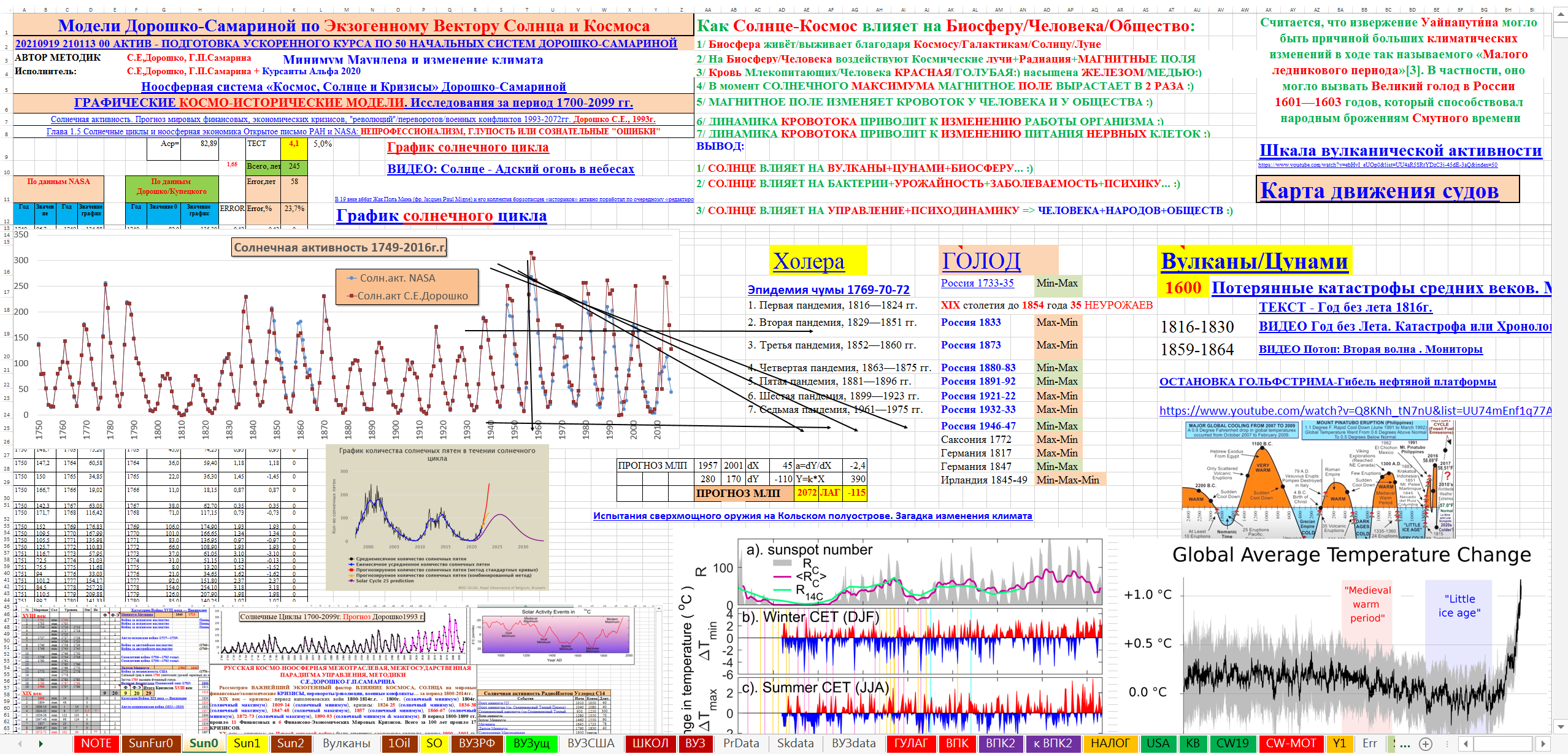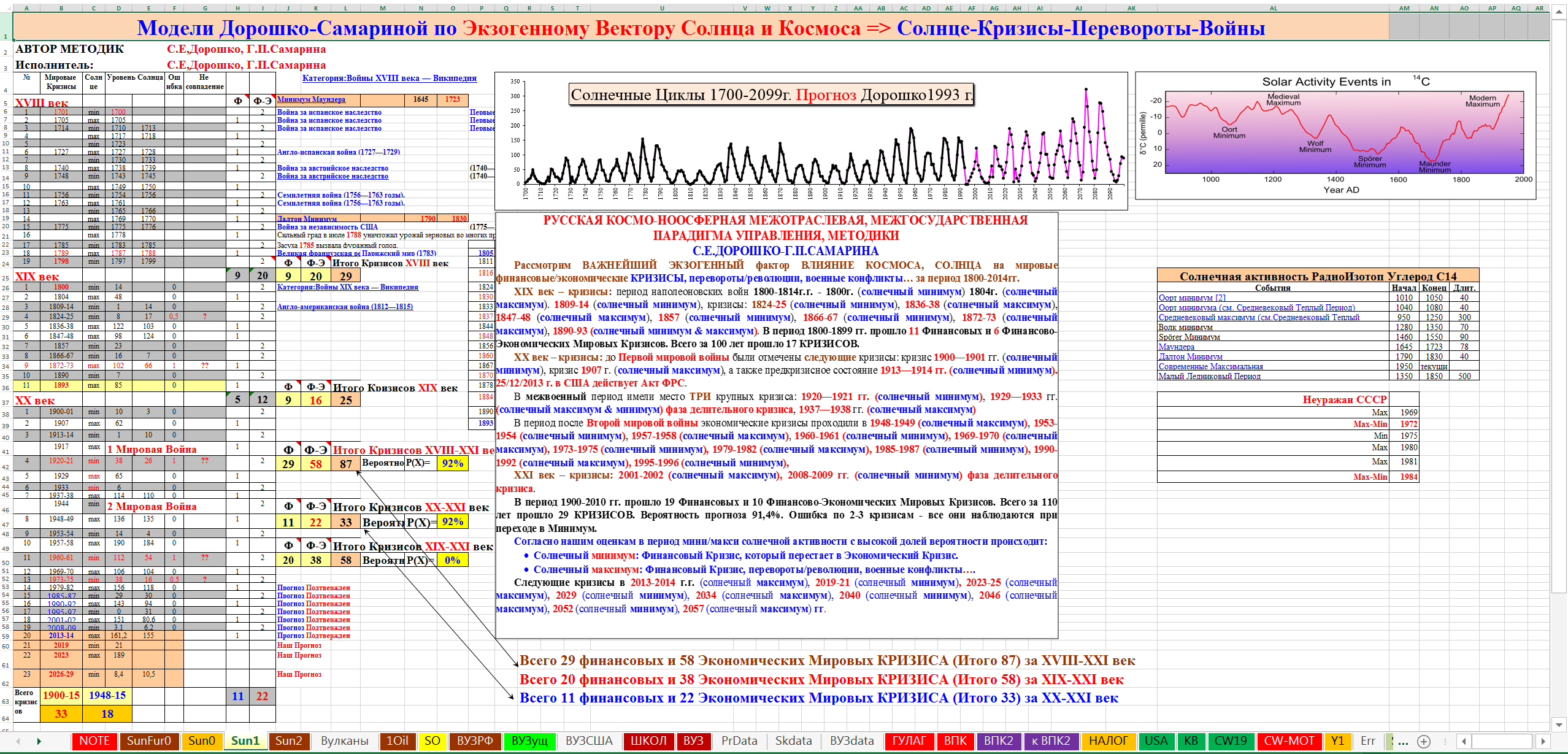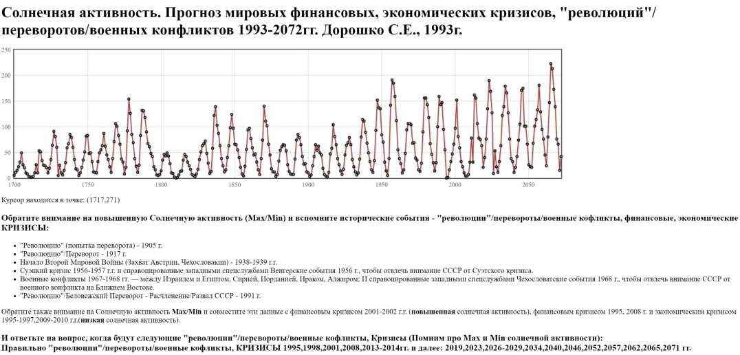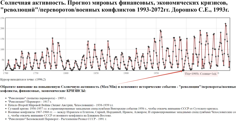 Сделаем важнейший вывод, вытекающий из космо-ноосферного комплекса С.Е.Дорошко, Г.П.Самарина «Ноосферная система «Космос, Солнце и Кризисы» Дорошко-Самариной» (http://economics-21.narod.ru/Book/book-17/b17.html#ds01), что климатические изменения, вызванные различными солнечными циклами, появление Эль-Ни́ньо в Южной Америке, приводят к катаклизмам на всей территории Земли !!! (http://economics-21.narod.ru/Book/book-17/b17.html#ds01, а не только в СССР и конкретно на Украине.