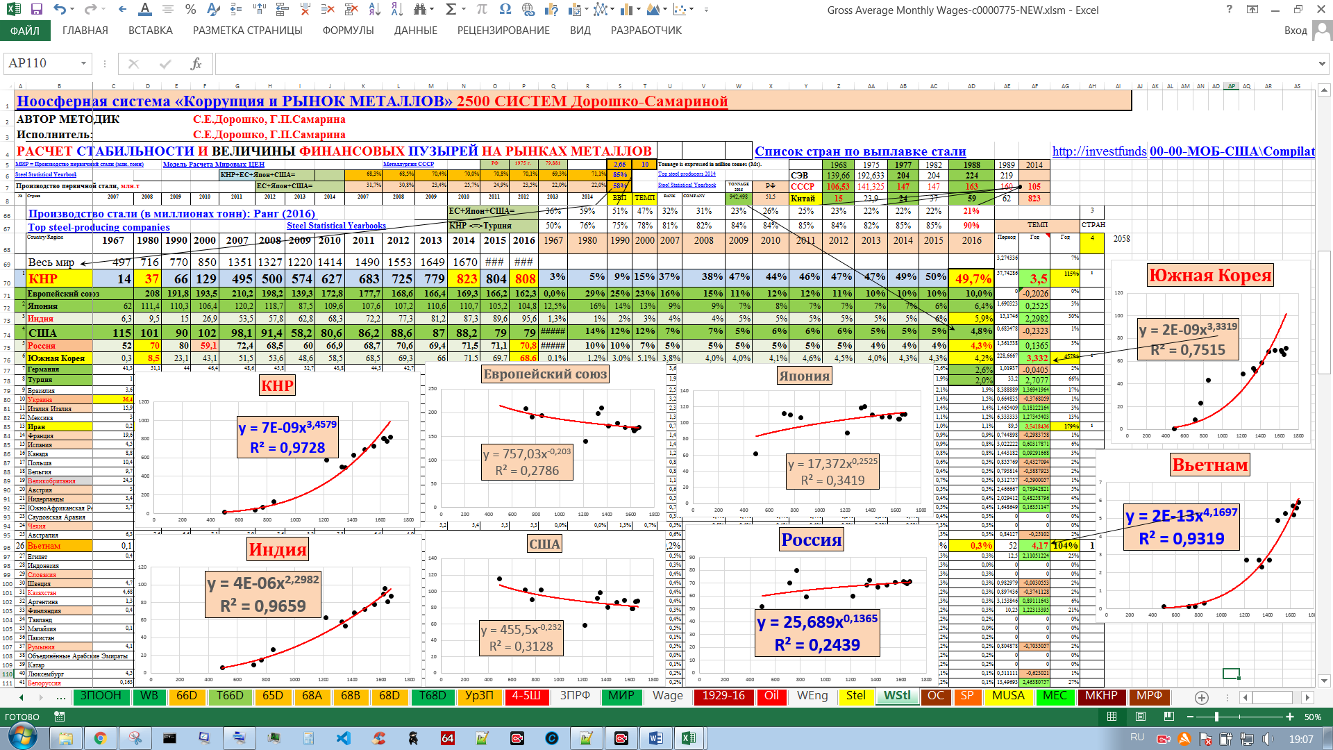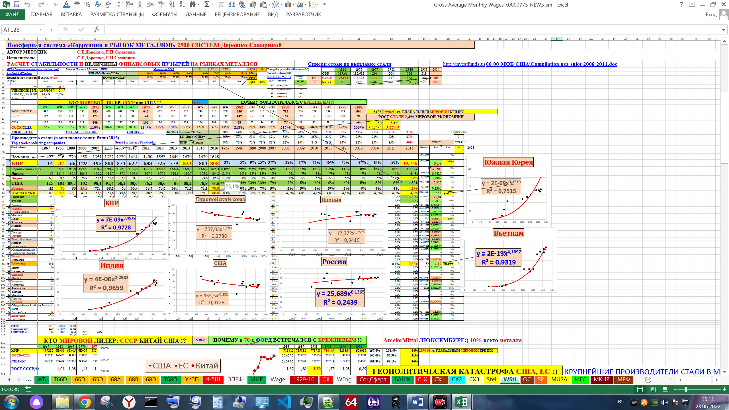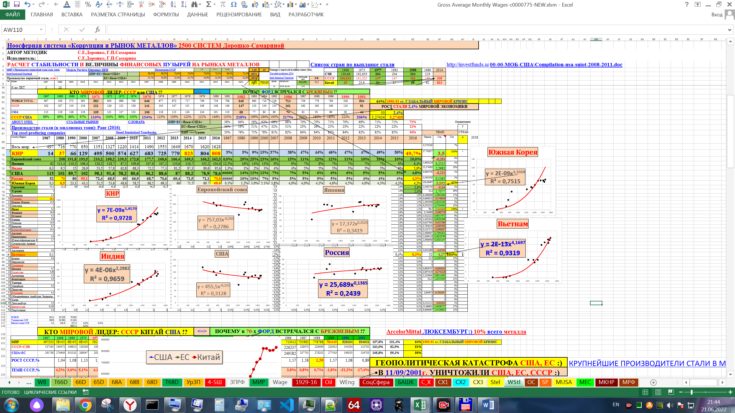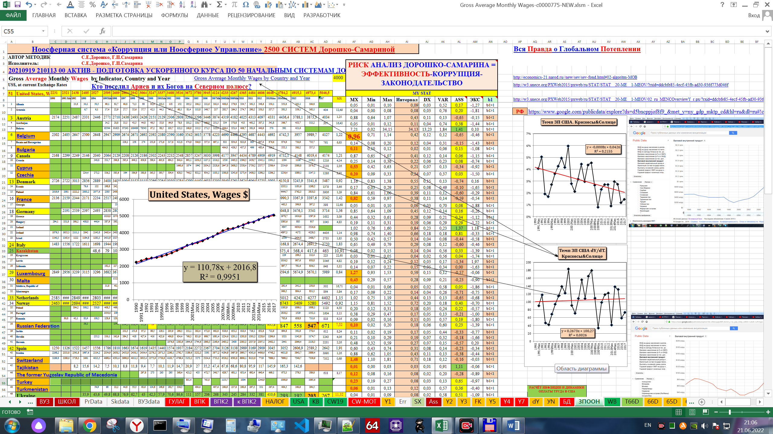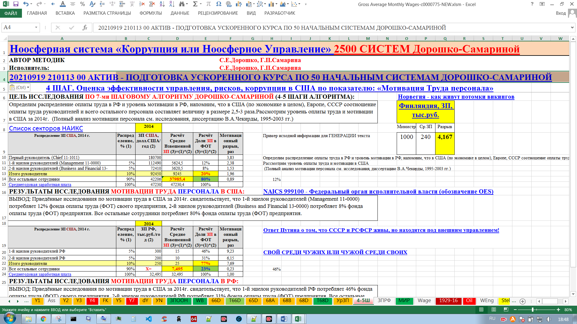 2. На втором этапе алгоритма, согласно космо-ноосферным методикам Дорошко-Самариной, необходимо ввести показатель по среднемесячной заработной плате, подчеркнём, за полностью отработанное время по исследуемым странам. Здесь следует обратить внимание на существенный момент: показатель среднемесячная или среднегодовая «заработная плата за полностью отработанное время». Причина данного важного уточнения, следующая: сегодняшние сионо-фашисты, пришедшие к власти после жидо-бандеровского Беловежского переворота, во всех государствах-членах ООН, в том числе в ООН и комитеты ООН, чтобы скрыть масштабы своих военных преступлений и грабежа народов Мира сочинили новый ложный показатель. Одна из форм грабежа выражается в сокрытии масштабной безработице в развитых странах запада и в Мире в целом. Для этого их «научные» эксперты, нобелевские лауреаты придумали показатель-«отмазку». Человек, который работает несколько часов в неделю, считается не безработным, а занятым. Этот момент требует дополнительных исследований в специализированной лабораторной работе системы начальной подготовки курсантов Академии «Мурзилка»/«Будильник». Распределение заработных плат аналогично распределению военных расходов: