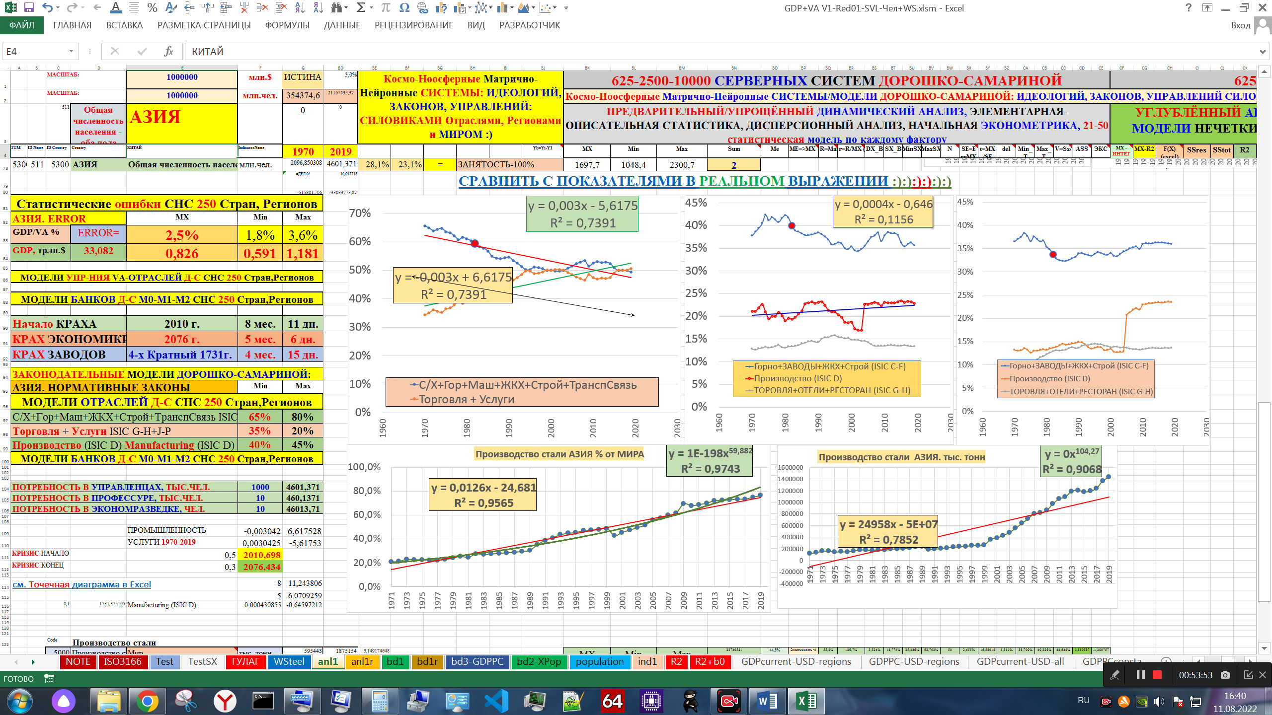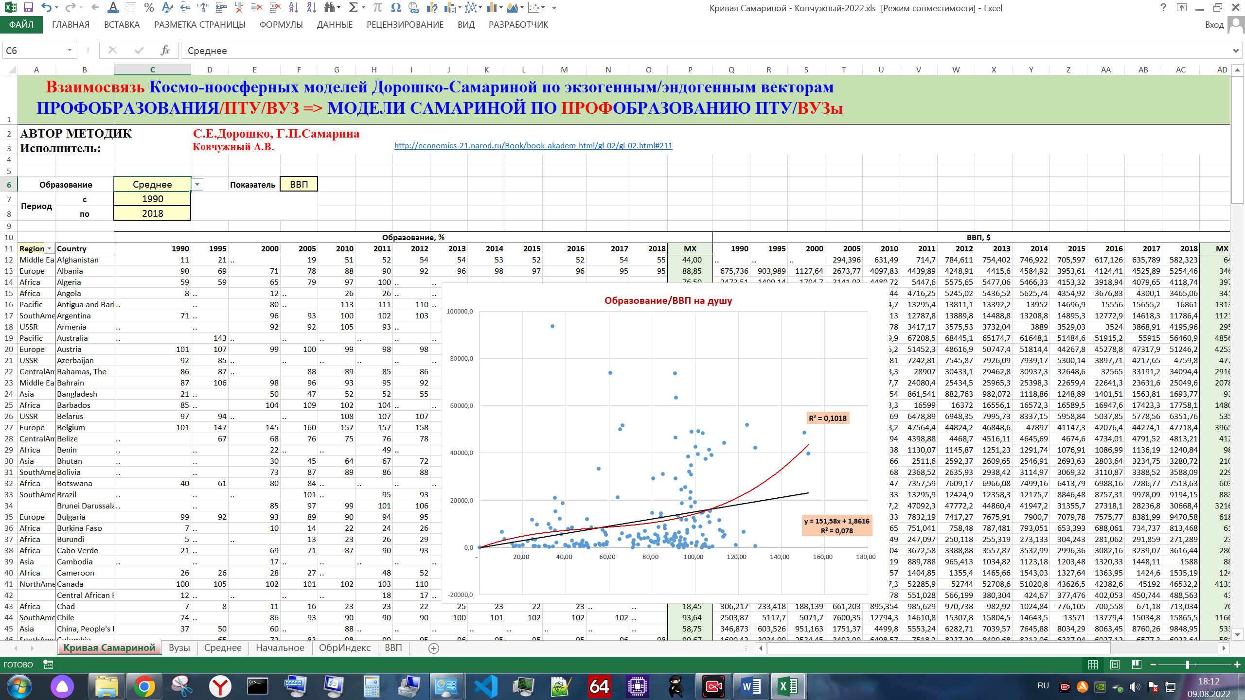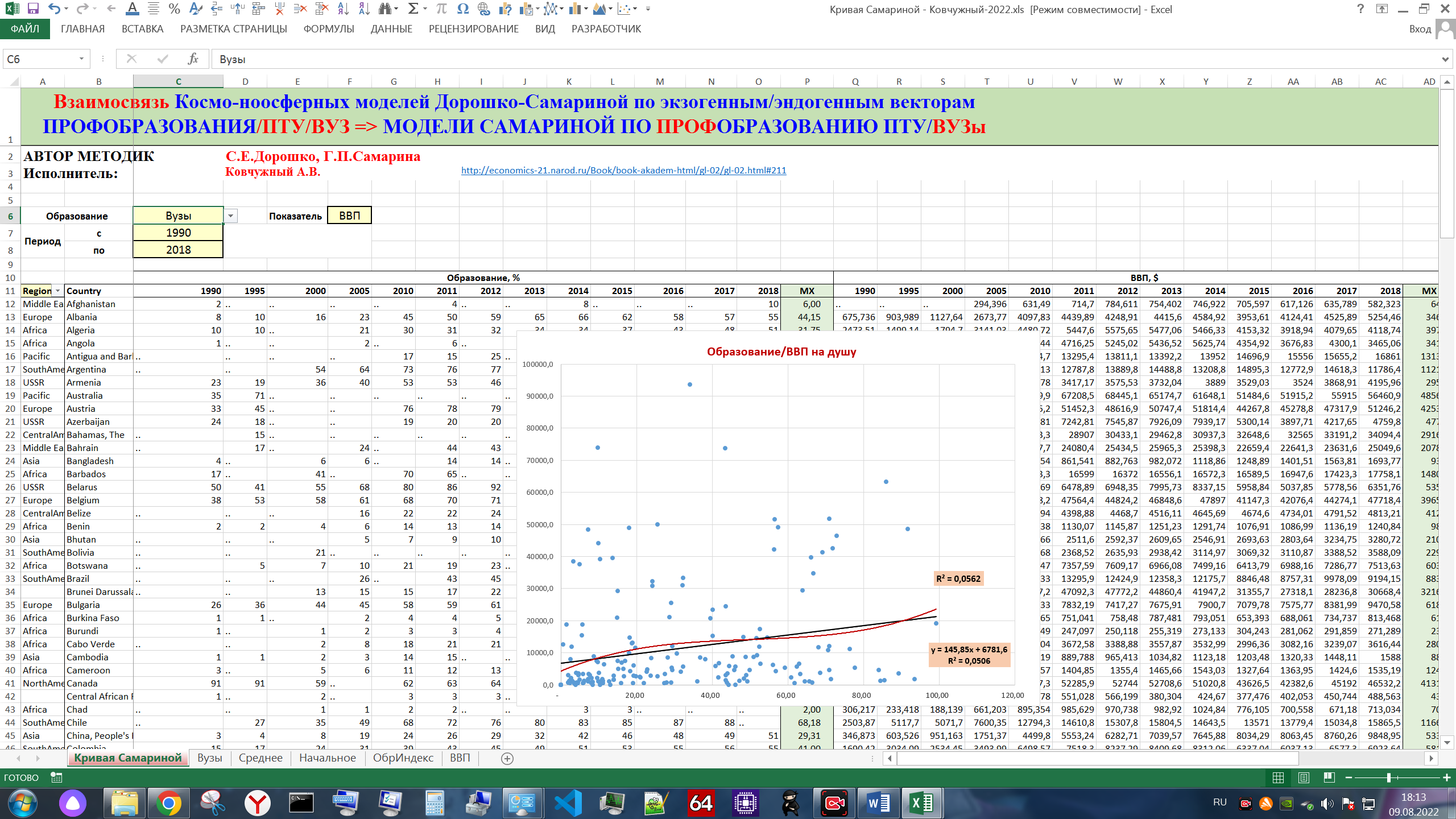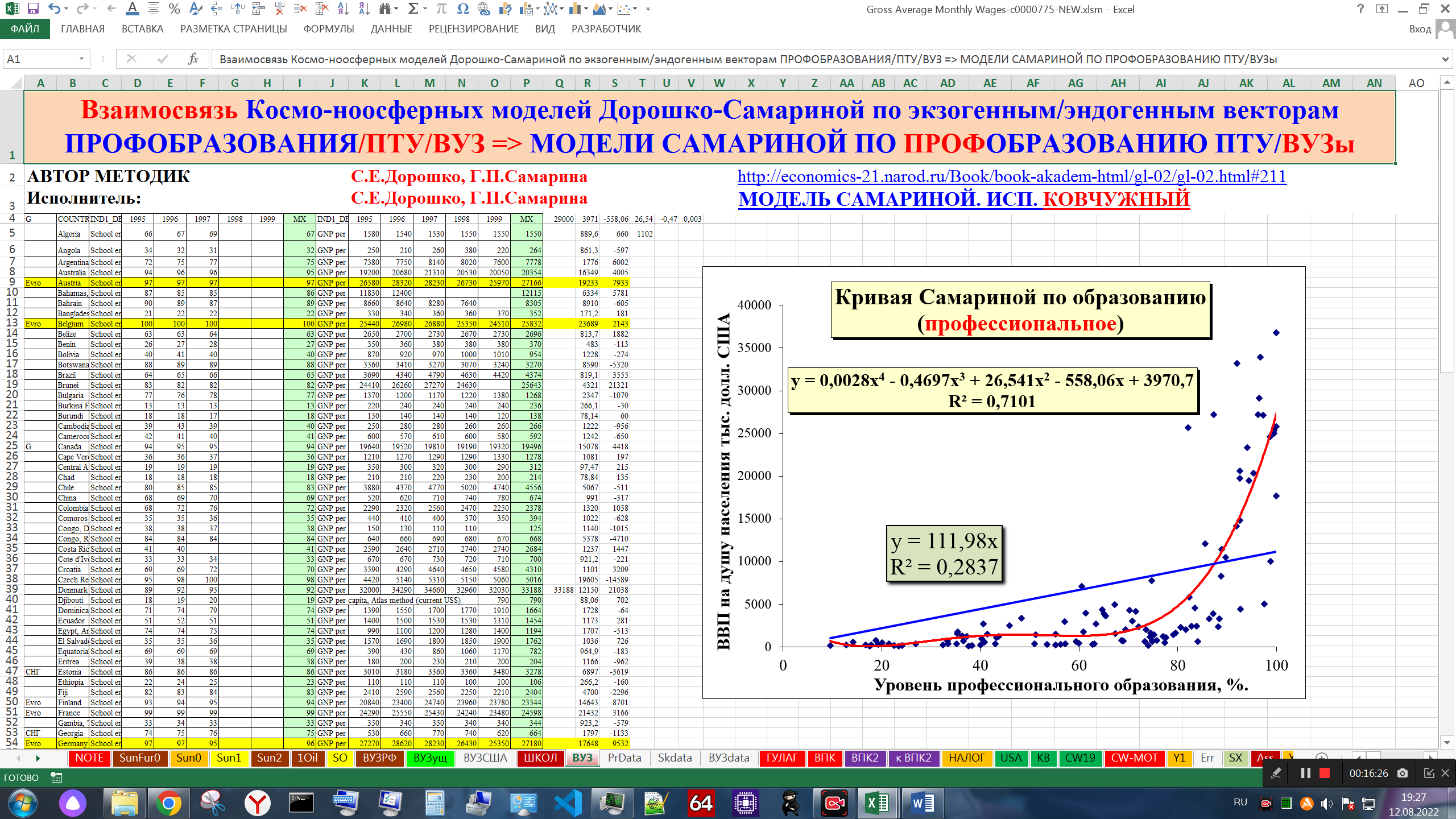 Раздел 2 Годовой отчёт работы Надгосударственной Народной Академии СЭВ за 2022г. Практикум. Лабораторные работы курсантов по исследованию проблем управления 250-ти стран, регионов и мира в целом на основе космо-ноосферных матрично-нейронных методик Дорошко-Самариной.