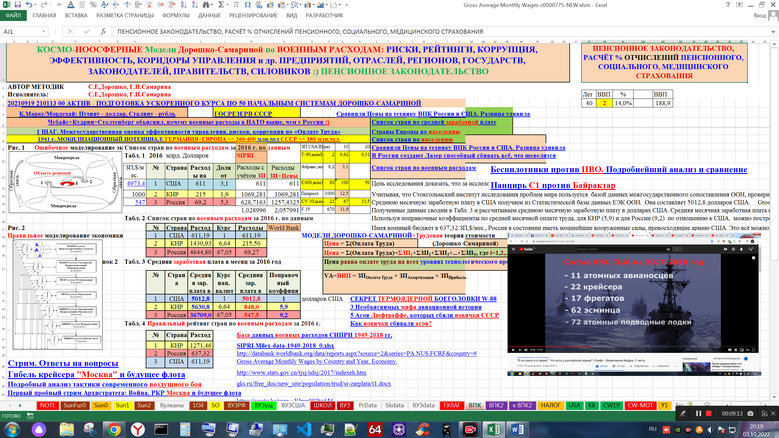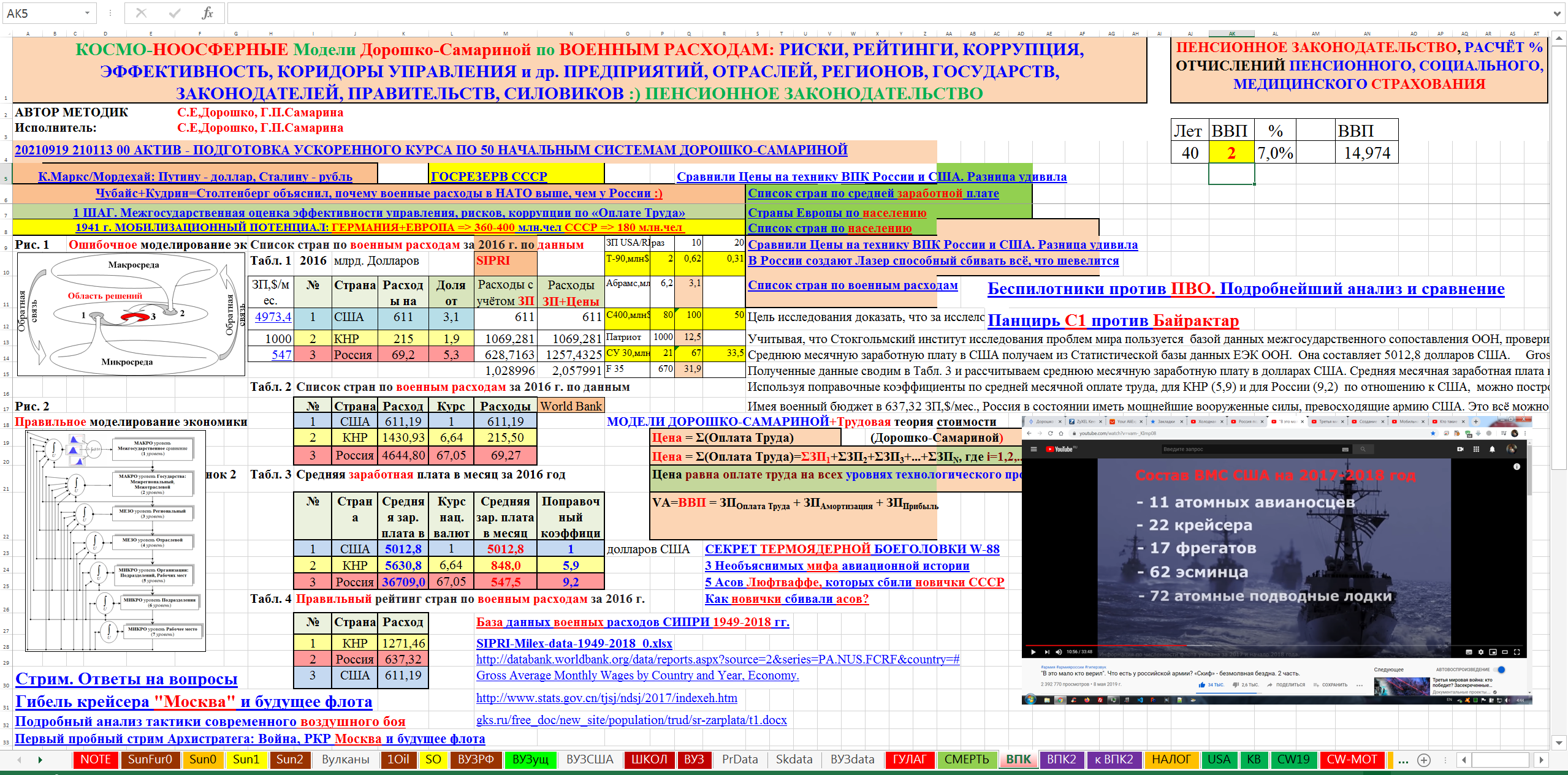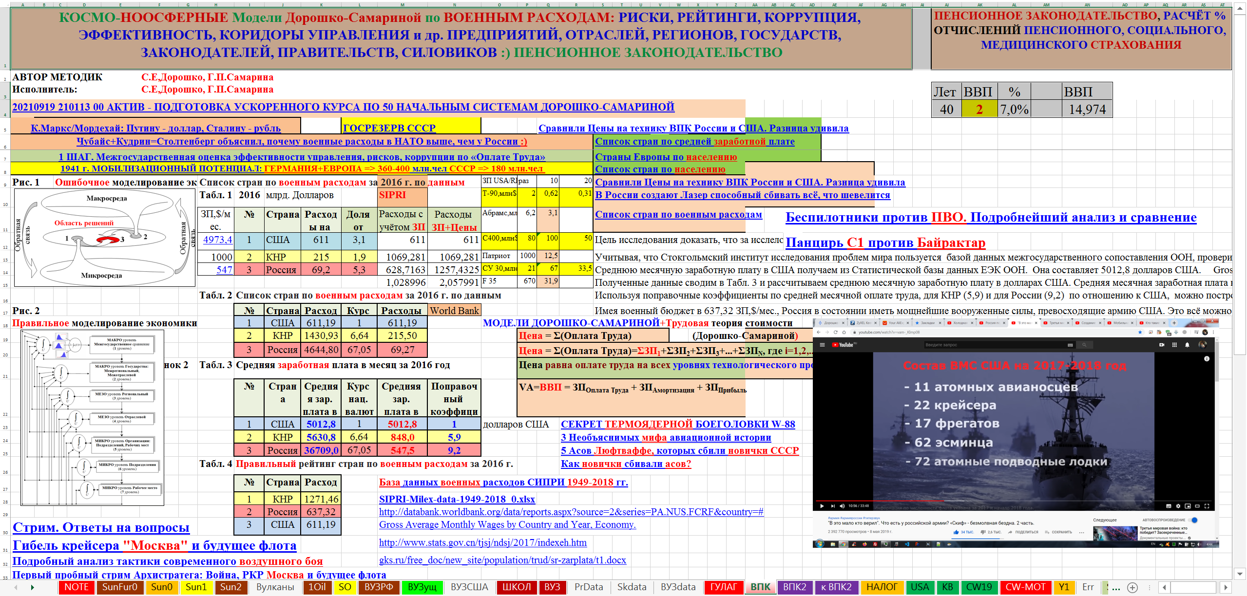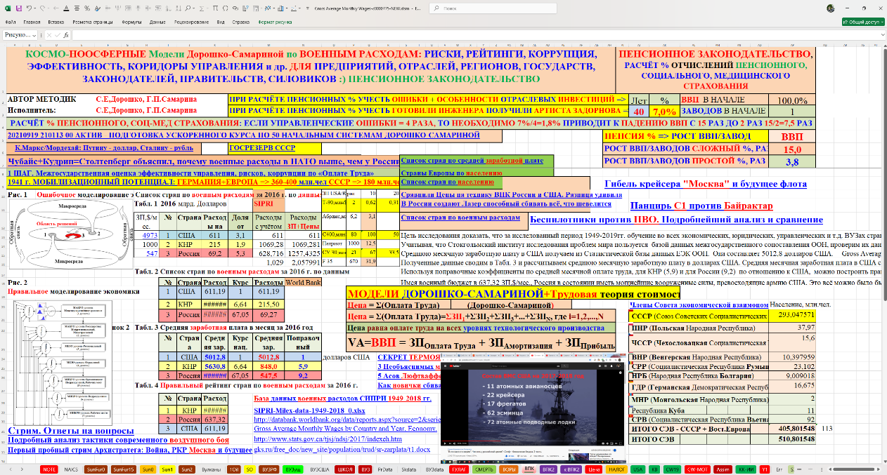 В-двенадцатых, в рамках космо-ноосферной парадигмы Дорошко-Самариной показать/доказать, что основная, ключевая ошибка исследований Стокгольмского института исследования проблем мира (SIPRI) и Института мировой экономики и международных отношений Российской академии наук им.Е.М.Примакова (ИМЭМО РАН), академиков, нобелевских лауреатов заключается в непонимании смысла, содержания и главное расчёта интегрального показателя «Валовой внутренний продукт» (ВВП). Все проблемы лежат на поверхности – как можно профессионально исследовать военные расходы, разработать рейтинги стран-членов ООН, если нет понимания расчёта интегрального показателя «Валовой внутренний продукт» (ВВП).