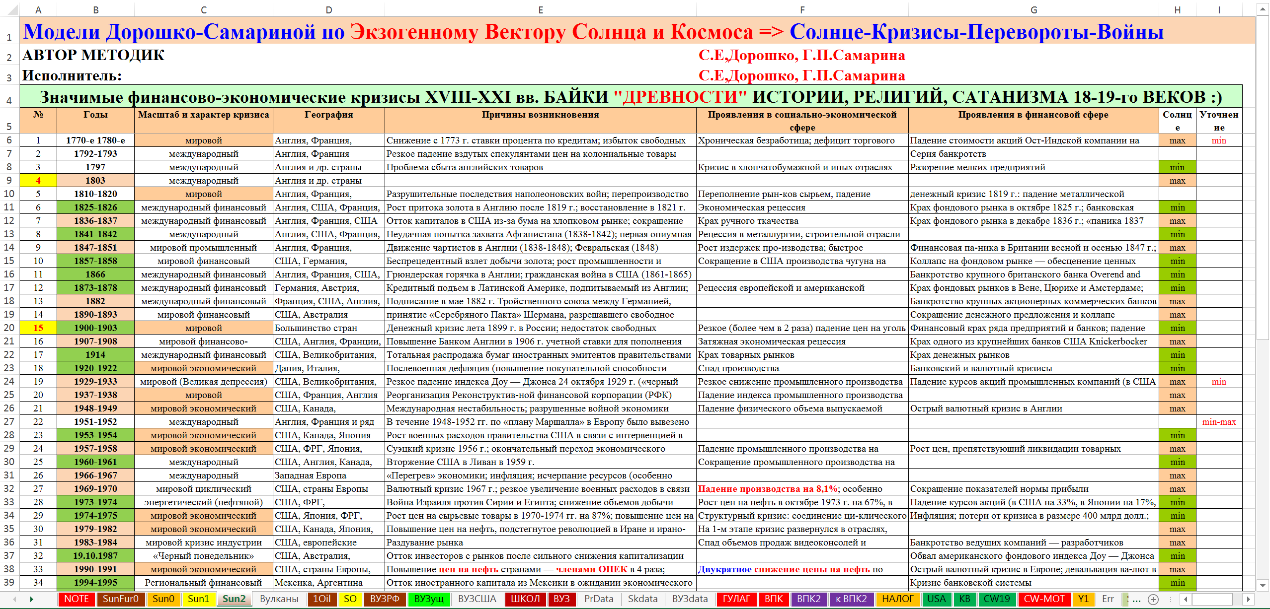 Вишенка на торте. В рамках космо-ноосферных систем Дорошко-Самариной, как писали в своих работах С.Е.Дорошко и Г.П.Самарина, финансовая часть мирового кризиса в начале 2008 г. должна неизбежно перейти в фазу финансово-экономического кризиса во всех странах мира и к естественному обвалу всех мировых показателей на всех мировых рынках к концу 2008г.