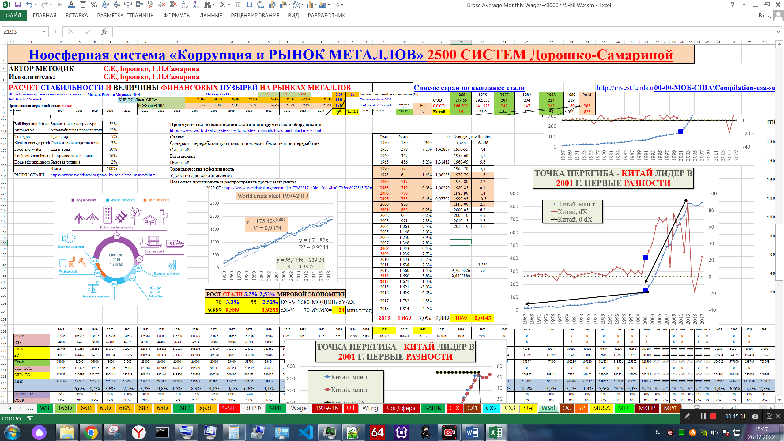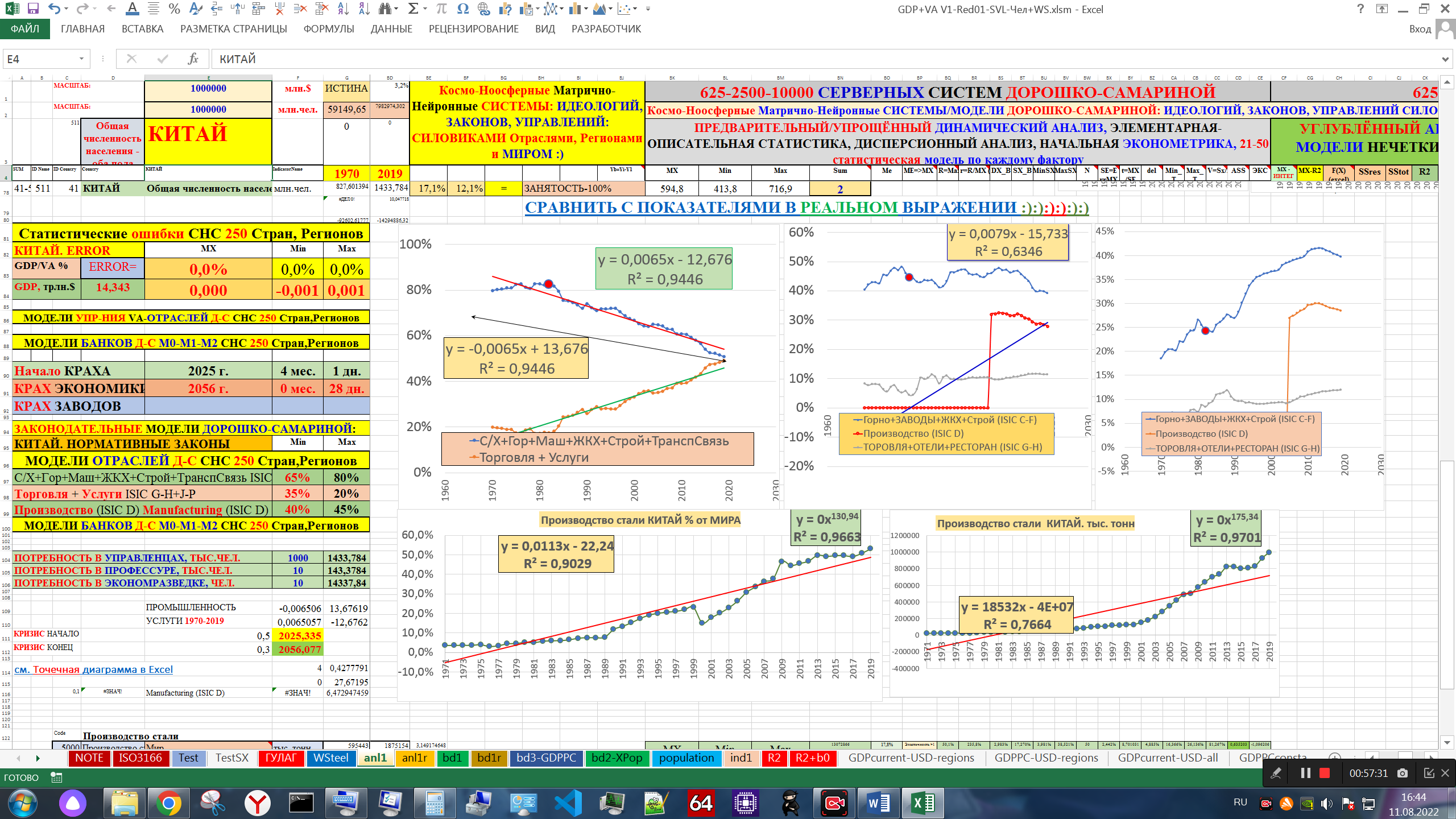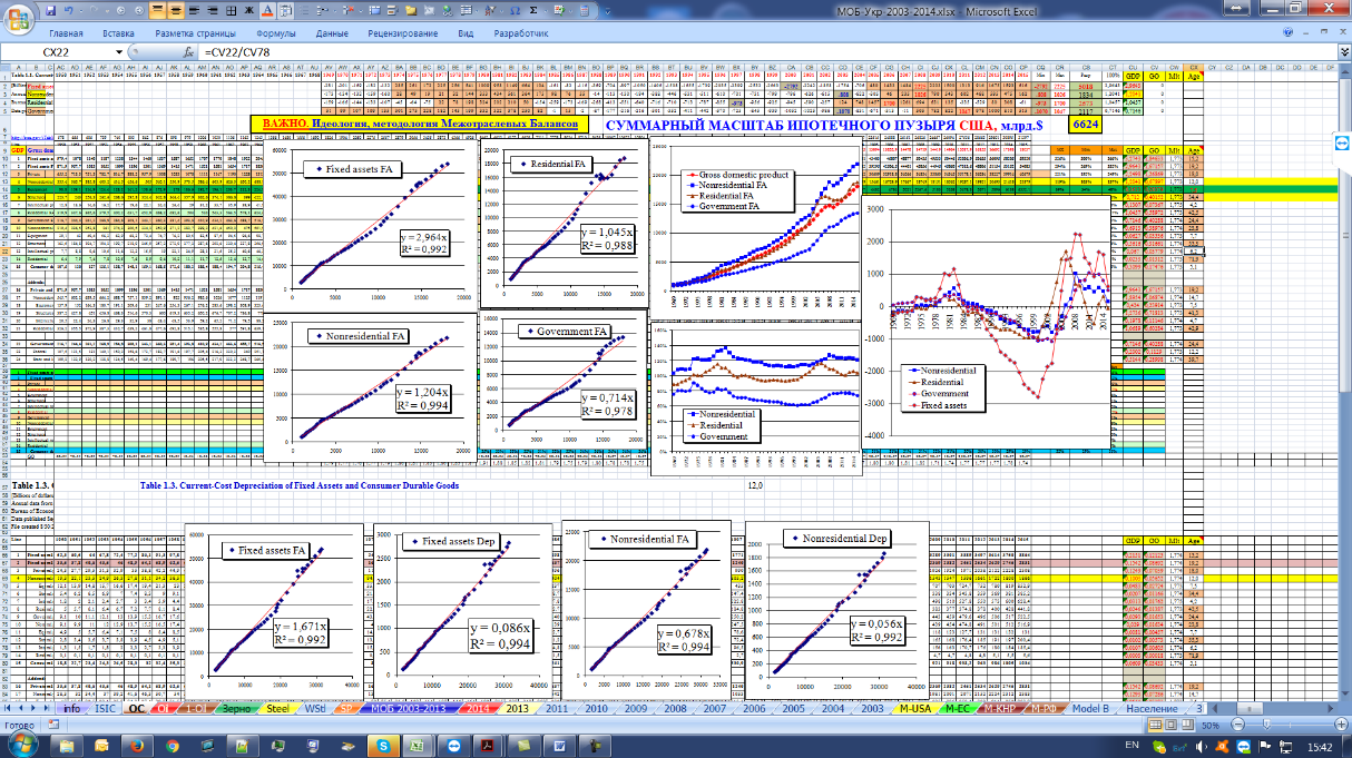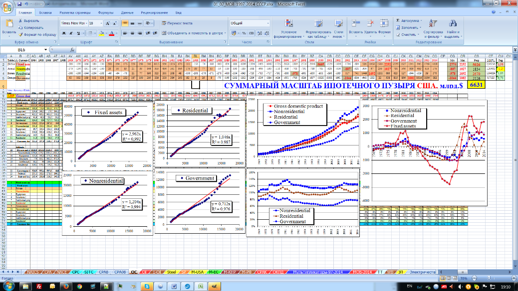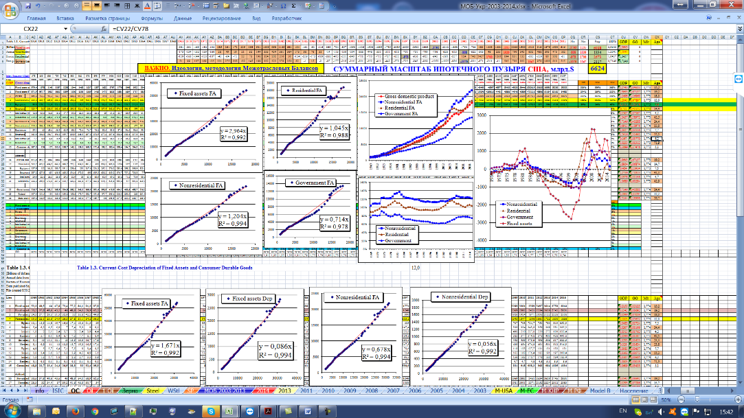 Обвал на рынке зерна начался в феврале 2008 года, а на рынке нефти обвал начался позже на 6 месяцев в июне 2008 года. Но есть ещё более интересные рынки, как правило, связанные с тем или иным мировым кризисом. В связи с тем, что в 2008 году наблюдался кризис на ипотечно-строительном рынке, то можно предположить, и эти исследования у С.Е.Дорошко и Г.П.Самариной есть (https://economics-21.narod.ru/Book/book-12/index.html), что будет наблюдаться весьма «оригинальный» обвал рынка и показателей ВВП в лесопромышленной отрасли или комплексе, но это отдельная тема, которая была отражена в монографии https://economics-21.narod.ru/Book/book-12/index.html#_981.