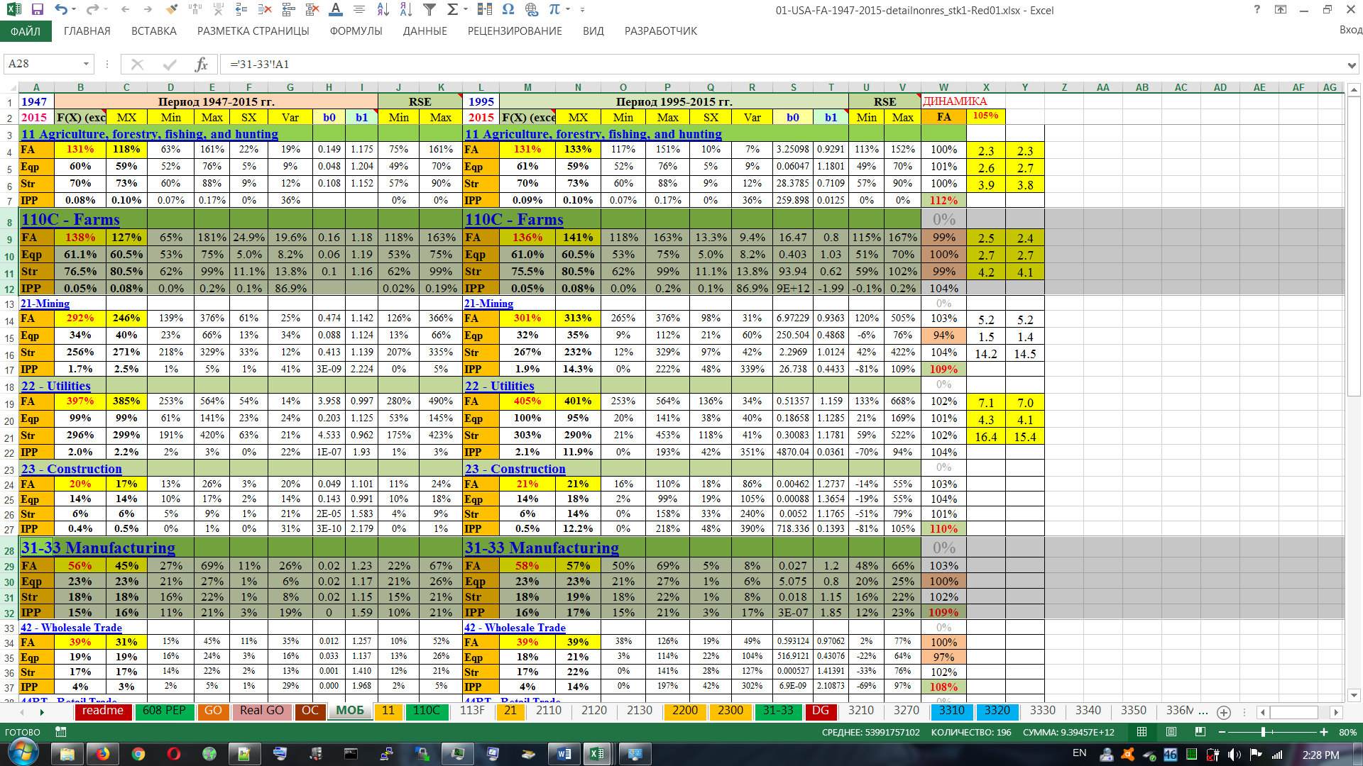 На самом деле эти данные верны. Одни отражают полную занятость (при 8-часовом рабочем дне и 40-часовой неделе), а другие данные Министерства труда США, которые на самом деле отражают скрытую безработицу в США. Ведь, согласно официальным источникам, безработица в США отражает социально-значимые проблемы в экономике мирового лидера. И если посмотреть на официальные отчёты Президентов и Правительства США, то они официально утверждают показатель безработицы в размере 3-5%, что является откровенной ложью. Так как в рамках космо-ноосферной систем Дорошко-Самариной реальная безработица в США десятилетиями искажается и скрывается благодаря внедрению этого ложного показателя в СНС ООН с 1968г. В рамках космо-ноосферных систем Дорошко-Самариной реальная безработица в США исчисляется десятками процентов, как в экономике в целом, так и в отраслевом отрезе, что будет показано ниже.