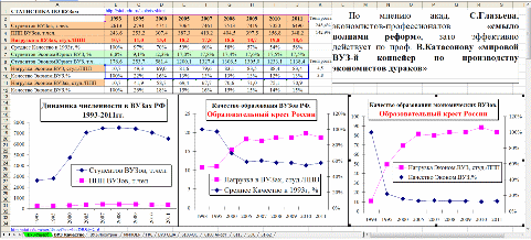 В-четвёртых, доказать, что все сегодняшние либералы, лжепатриоты, СМИ из одной выгребной ямы, как и выпускники конвейера дураков, которых они обсуждают, осуждают, а проще «треплются». Например, любой курсант Академии (ННА СЭВ) может легко рассчитать количество выпускников конвейера дураков, прокуроров, президентов, министров и прочих дебилов государств-членов ООН. Например, в РСФСР/СССР (Россия), начиная с 1992 года количество экономистов, юристов, социологов, и др. выпускается в размере 1 млн. чел. в год. Т.е. за последние 30 лет было сгенерировано, подготовлено 30 млн. непрофессионалов. Это минимальное количество выпускников конвейеров дураков, многим из которых сейчас всего лишь 50 с небольшим лет. Если учесть, что общая численность населения в РСФСР/СССР (Россия) составляет около 146 млн. чел. (146 447 424 чел.), то активная часть населения составляет около 70 млн. чел., из которых 30 млн. чел. - это выпускники конвейера дураков, или по В.В.Путину – «ассенизаторы»?! Вопрос: с таким количеством дураков в стране может быть какое-либо будущее?! Конечно, можно обратиться к более детальной модели по высшему и среднему образованию государств–членов ООН, которую разработала Г.П.Самарина более 20 лет назад (https://economics-21.narod.ru/Book/book-akadem-html/gl-02/gl-02.html#211). В тоже время если учесть, что на Западе более 200 лет, а в СССР и СЭВ более 30лет отсутствует образование, то можно усомниться в объективной статистической информации, которые предоставляют комитеты по образованию ООН. Это значит, что комитеты ООН являются международными, государственными, военными преступниками, так как искажают реальную картину по образованию в мире. Правда если учесть, что они также являются выпускниками конвейеров дураков, то естественно, что качество статистических данных по образованию естественно будет также искажённым.