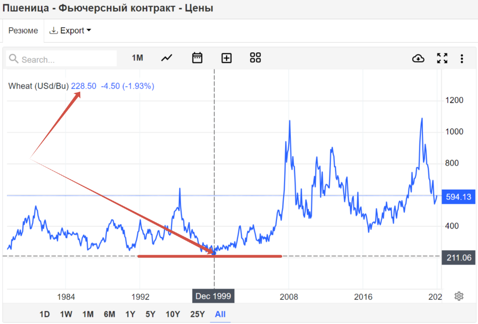 Для этого достаточно взять и посмотреть продовольственную безопасность на примере интегрального показателя пшеницы.
