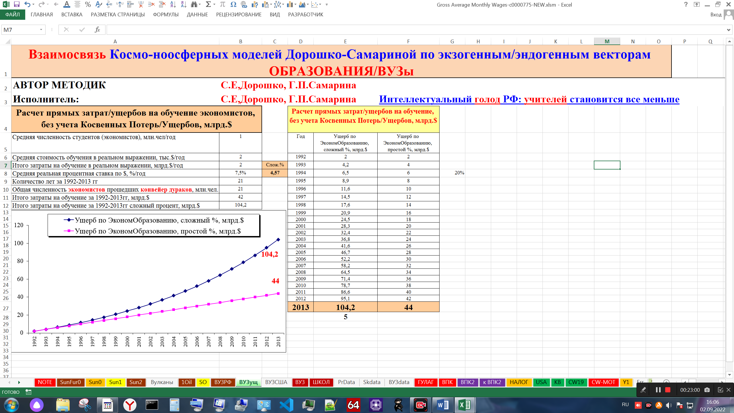 В рамках космо-ноосферной парадигмы Дорошко-Самариной при рассмотрении второго этапа алгоритма по военным расходам даётся уточнение по такому важному показателю, как среднемесячная или среднегодовая заработная плата «за полностью отработанное время». Причина данного важного уточнения, следующая: сегодняшние сионо-фашисты, пришедшие к власти после жидо-бандеровского Беловежского переворота, во всех государствах-членах ООН, в том числе в ООН и комитеты ООН, чтобы скрыть масштабы своих военных преступлений и грабежа народов Мира сочинили новый ложный показатель. Одна из форм грабежа выражается в сокрытии масштабной безработице в развитых странах запада и в Мире в целом. Для этого их «научные» эксперты, нобелевские лауреаты придумали показатель-«отмазку». Человек, который работает несколько часов в неделю, считается не безработным, а занятым. Этот момент требует дополнительных исследований в специализированной лабораторной работе системы начальной подготовки курсантов Академии «Мурзилка»/«Будильник». Для начального этапа изучения данной проблемы достаточно понять упрощённую версию лабораторной работы.