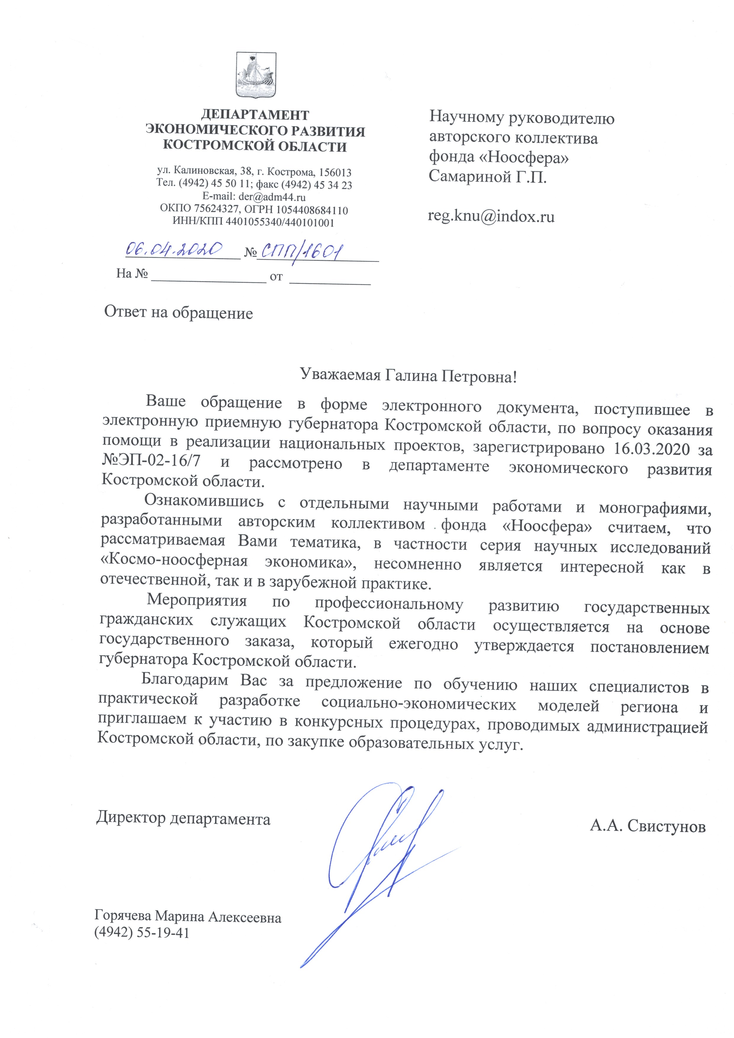 Уведомляем Вас, что нашим авторским коллективом задолго до появления Плана и Доктрины разработаны эскизные ноосферные проекты устойчивого развития в условиях климатических потрясений для предприятий, отраслей, регионов и страны в целом. Предлагаем ознакомить Вас и Ваших экспертов, специалистов как практически реализовать в Вашем регионе План и Доктрины президента и правительства, а в дальнейшем оказать помощь в обучении и подготовке Вашего регионального Плана и Доктрины.