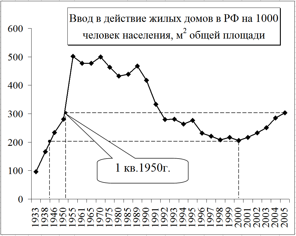 Проведенные исследования проблем, состояния и тенденций строительства и ЖКХ в России за период с 1960 по 2005 г.г. показали ярко выраженные негативные тенденции в динамике не только строительного комплекса и ЖКХ, но и во всех обеспечивающих их отраслей. Если учесть, что в послевоенное советское время на жилье выделялось не более 3-5%, то "успехи" в строительной отрасли РФ несложно оценить – они огорчающие.
