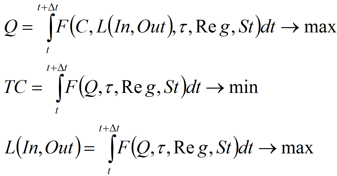 Q=f(Т,L(In,Out),t,C,Reg,St) |
