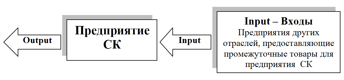 Как видно из рис. 3.1., для того, чтобы любое предприятие строительного комплекса произвело свои товары и услуги (выручку, в том числе НДС и прочие налоги), т.е. сформировать output-выход, оно должно приобрести или получить на входе - input товары и услуги предприятий других отраслей. В форме 2 балансового отчета любого предприятия строительного комплекса это статья материальные затраты.