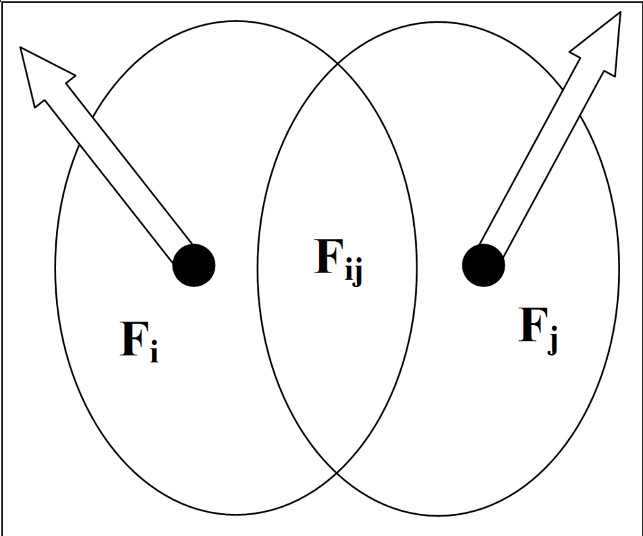 Как видно из рис. 1.7., факторы Fi описывают классическую модель международной отчетности IAS и/или GAAP. Индекс i определяет конечное счетное множество факторов. В рамках стандарта их около 50-100, т.е. i=1…50…100. Как на интуитивном уровне, так и в рамках теории множеств понятно, что данное ограниченное множество факторов неизбежно формирует пересекающееся множество Fij большой площади. Причина объективна - каждый из факторов имеет высокий уровень интеграции, как следствие при описании модели международной отчетности IAS и/или GAAP для оценки эффективности исследуемой организации формируется высокий уровень неопределенности, далекий от объективных оценок, позволяющий давать только поверхностные оценки в рамках динамической ноосферно-синергетической производственно-мотивационной концепции.
