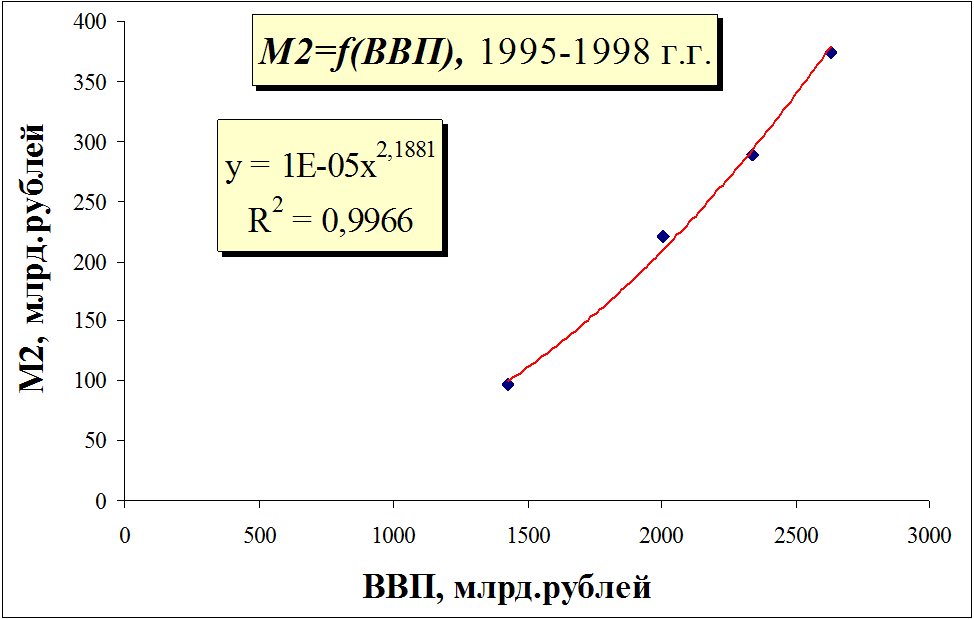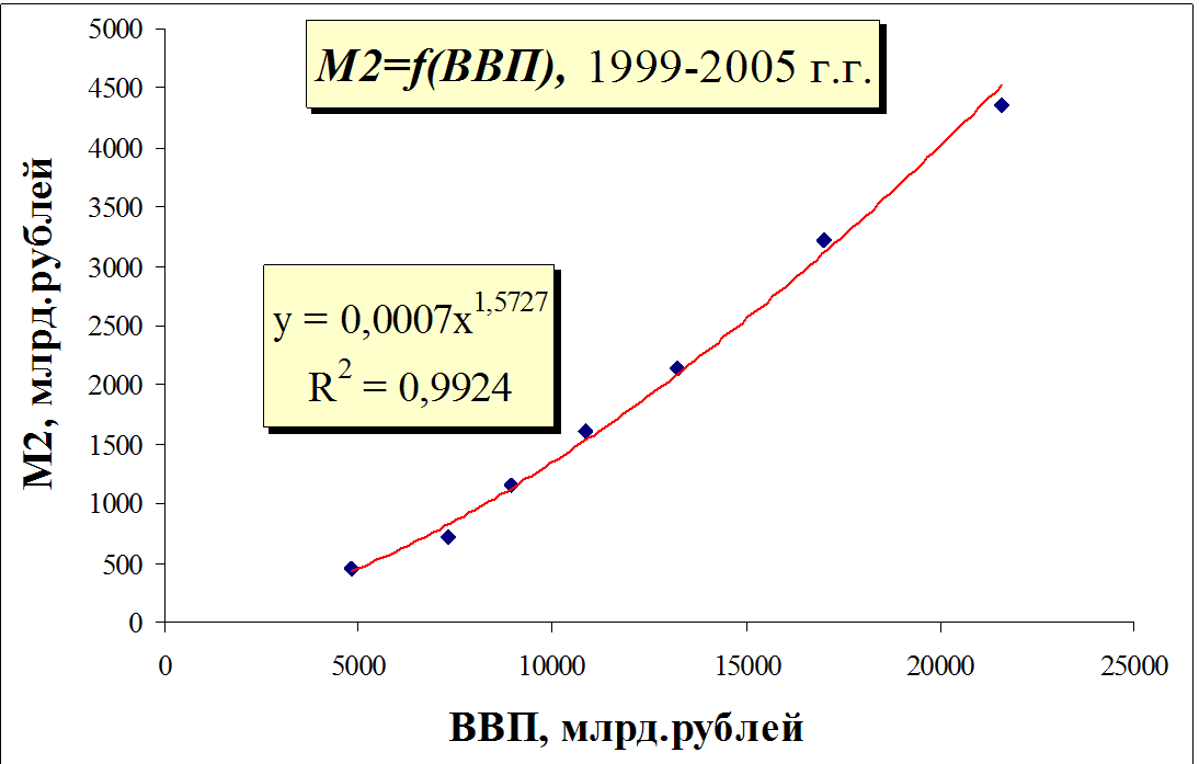 М2=f(ВВПРФ)=0,0007*ВВП1,5727