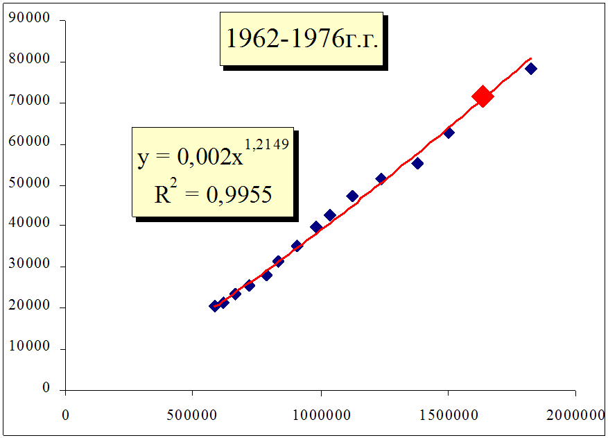 Отметим, что в исследованный период в США прошло два кризиса 1969-1971 и 1973-1975 г.г. В тоже время влияние двух кризисов на развитие финансовой системы, как показывает график не очень заметно. Это как-то не увязывается с выявленной ранее вариацией синергетических бифуркаций в процессе динамического анализа денежной массы и ВВП страны.
