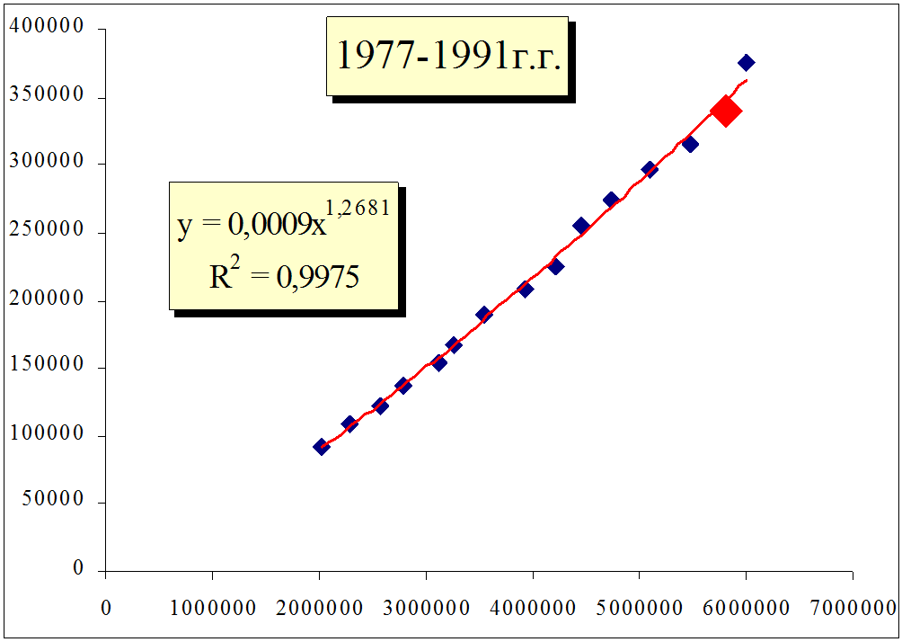 Отметим, что в исследованный период в США прошло два мировых кризиса: финансовый и энергетический. В тоже время влияние двух кризисов на развитие финансовой системы, как показывает график, не очень заметно. Это как-то не увязывается с выявленной ранее вариацией синергетических бифуркаций в процессе динамического анализа денежной массы и ВВП страны.
