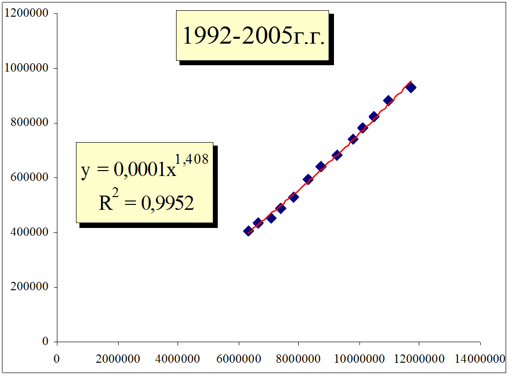 Образовавшиеся финансовые рынки этой новой виртуальной экономики и вызвали смещение показателя эластичности над показателем базового индекса на величину 6,8% процентов. На основании полученных результатов можно подтвердить ранее сделанные выводы о незначительном изменении реальной экономики и всех ее связей. Влияние виртуальной экономики можно в среднем оценить в размере не более 6-11%.