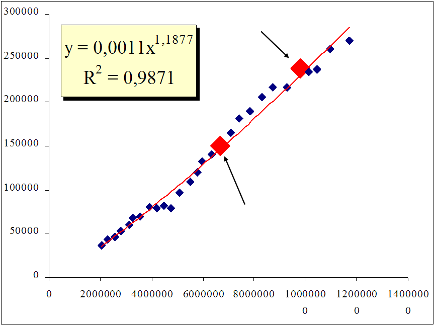 Это и отразилось на показателе эластичности, который равен всего 124%, что значительно меньше показателя темпа роста 347%. Это характеризует тот факт, что в данный период процесс развития фондовой системы, несмотря на высокий темп, не отличался достаточной стабильностью. И возможно, свидетельствует о наличии синергетических бифуркаций со своими фазовыми сдвигами в точках бифуркации.