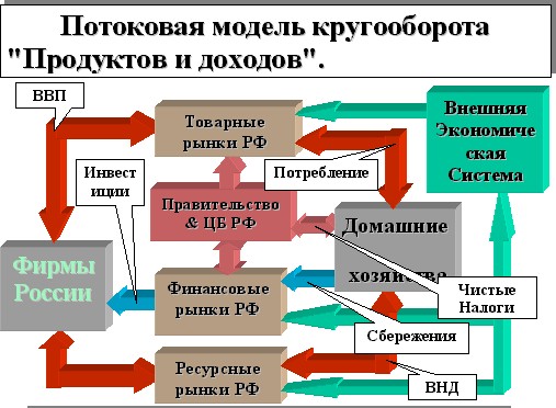 Давайте внимательно посмотрим на потоковую модель кругооборота "Продуктов и доходов" и разберемся, почему самые главные рынки – "Ресурсные рынки" графически представлены внизу.