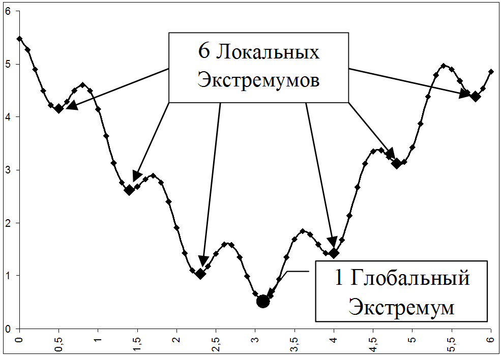 Рис. 1.43. Каноническая проблема поиска глобального экстремума |