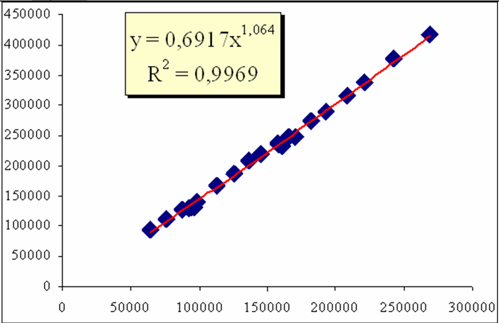 Проведенное авторами исследование по большинству экономических показателей обнаружило, что нормальное распределение в реальной экономике встречается не более 5%. Поэтому это и объясняет столь высокий уровень ошибок, который допускают большинство экономистов в своих исследованиях. Если в прошлом веке подобные усреднения были хоть как-то оправданы из-за отсутствия реальных вычислительных мощностей, то в настоящее время этому трудно найти объяснение. Можно себе представить какова величина ошибки была бы в наших расчетах, если бы применялось нормальное распределение и функциональная линейная зависимость.