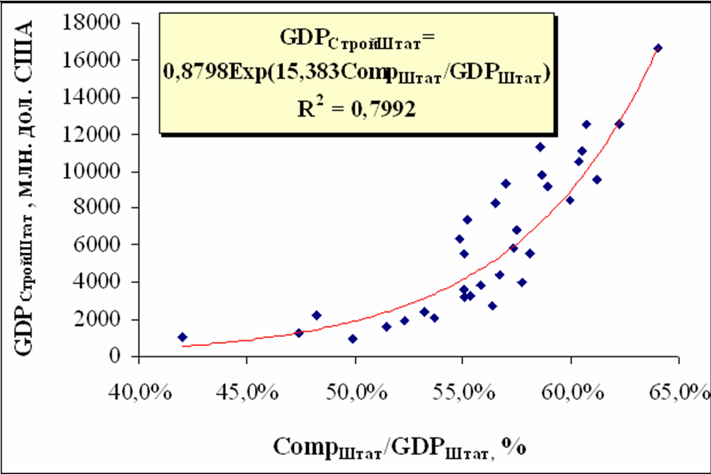GDPСтройШтат=0,8798*Exp(15,383*CompШтат/GDPШтат) (2.1.11)