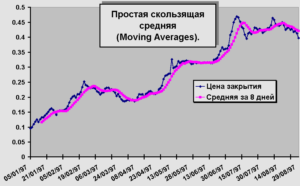 Рис.6. Простая скользящая средняя (Moving Averages). Средняя за 8 дней