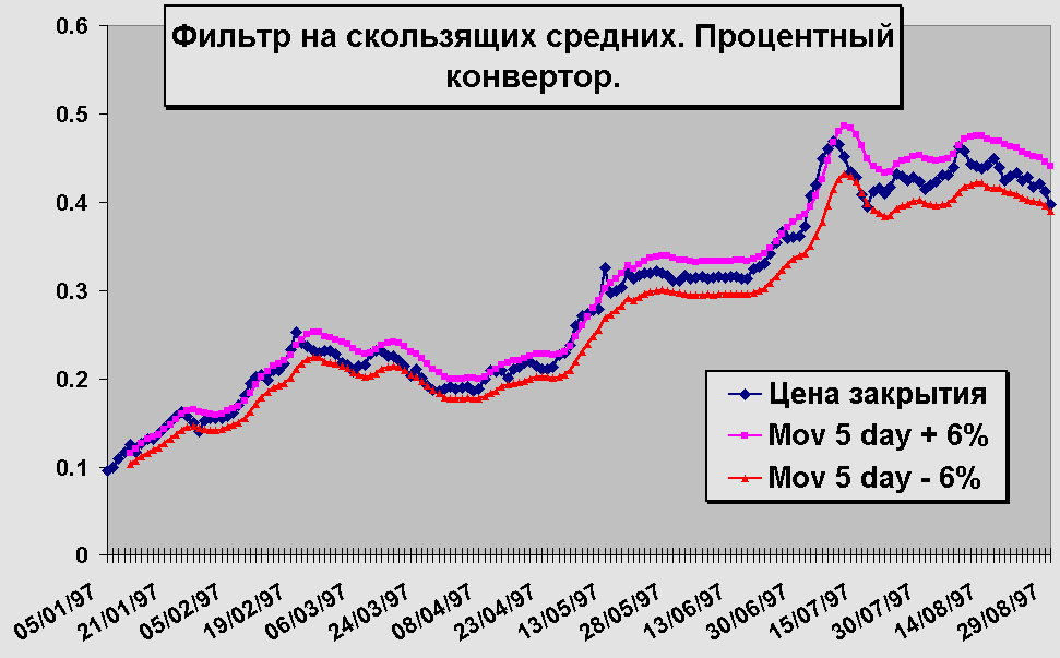 Рис.8. Фильтры на скользящих средних. Построение процентного конверта. При нажатии на график будет вызван пример. |