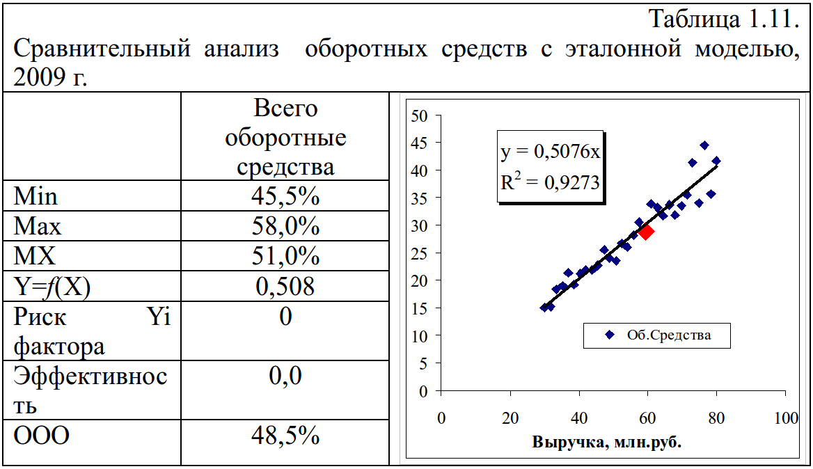 Сравнительный анализ оборотных средств с эталонной моделью, 2009 г.
