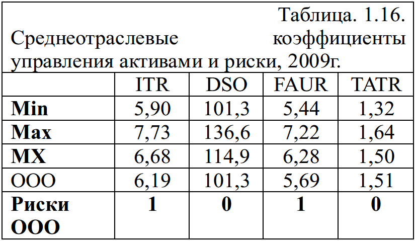 Среднеотраслевые коэффициенты управления активами и риски, 2009г.