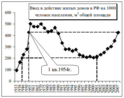 Отметим лишь некоторые детали. Так, в РФ уровень жилищного строительства в 2002 г. соответствовал 1946 г., в 2003 г. – 1947 г., в 2004 г. – 1950 г., и т.д.