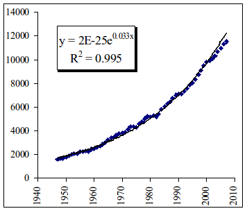 Рис. 3.27. Динамика реального ВВП, в млрд. долл.США за 1947-2007 г.г.