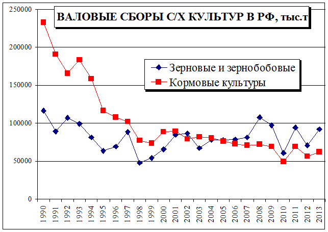 и валовых сборов (тыс.тонн) сельскохозяйственных
