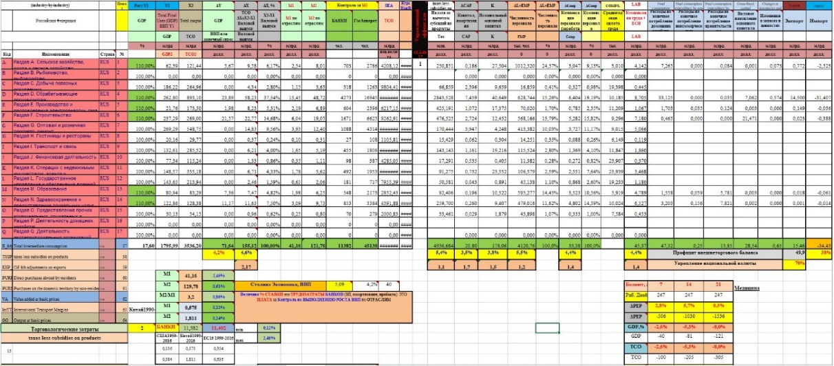 Анализ мультипликативных межотраслевых эффектов по 40-ка странам мира, производящим 80-85 % мирового ВВП, а также результат межотраслевого моделирования по 16 странам членам ООН доказывает, что объективное, здравое эффективное управление для любого государства связанно с развитием, в первую очередь, основных тактических отраслей: сельское хозяйство, строительство, ЖКХ, промышленность, и стратегических отраслей экономики, связанных с кадровым потенциалом стран: наука, образование, здравоохранение, культура. Развитие указанных отраслей позволяет обеспечить продовольственную, энергетическую, экологическую, технологическую, климатическую безопасность любого государства, способствует всестороннему развитию человека, повысить выживаемость населения в условиях различных потрясений.