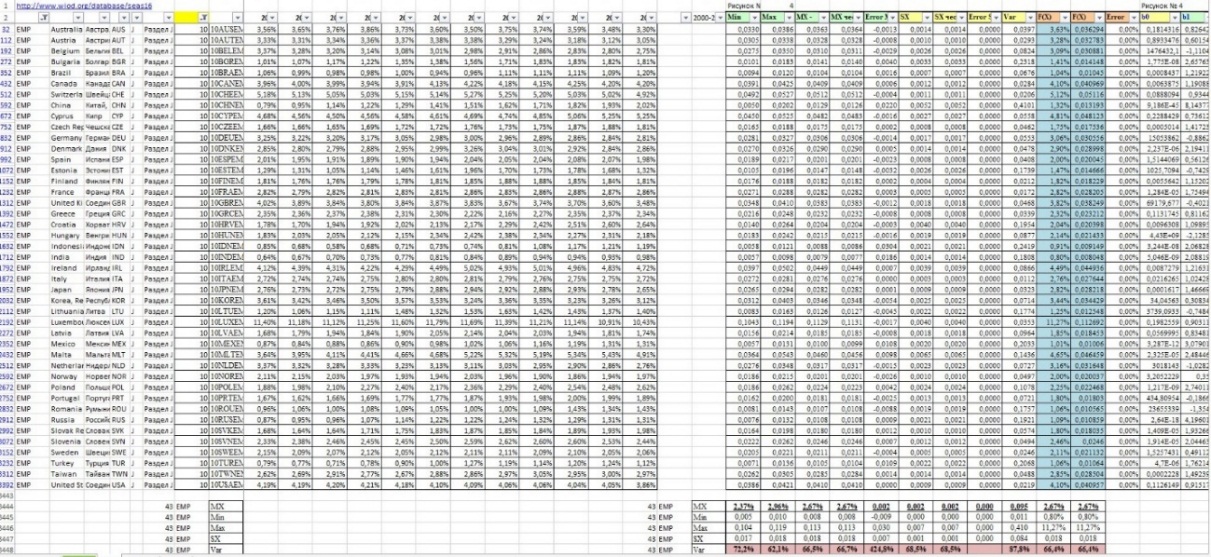 В монографии использовались статистические интернет базы данных ООН, World Bank, межотраслевые балансы 40 ведущих стран мира.