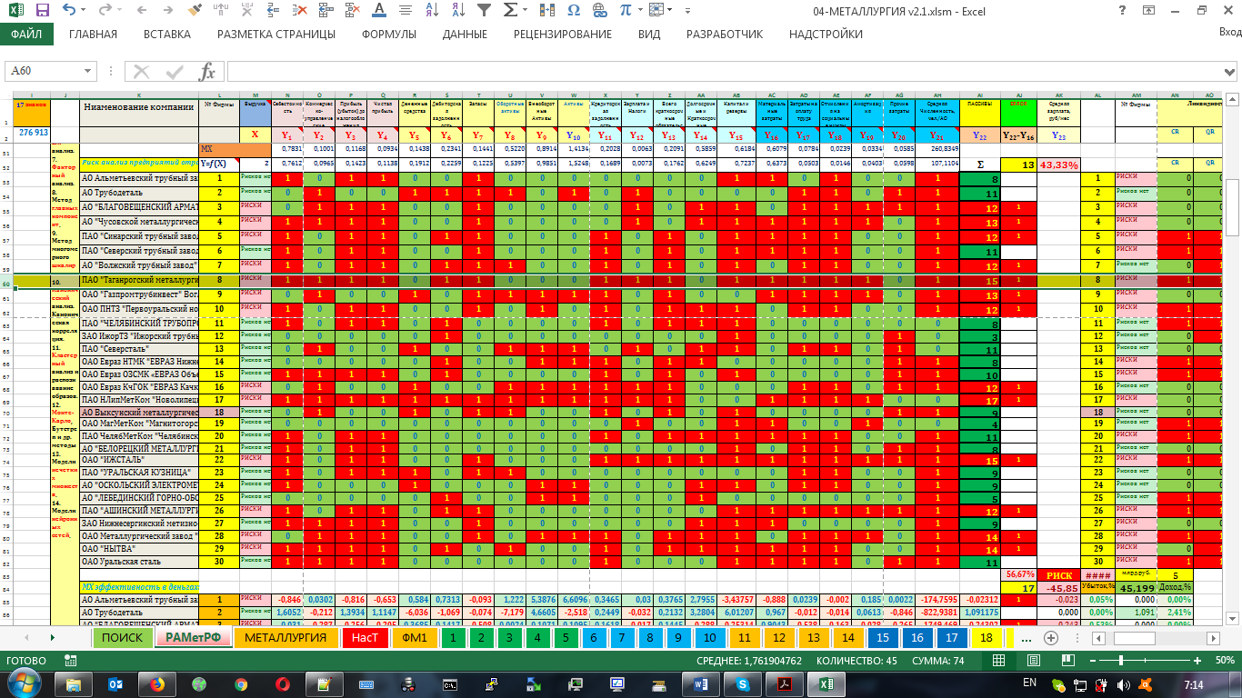 Таблица 2.62 - Анализ величин мультипликативного воздействия основных тактических и стратегических секторов экономики государства "Российская Федерация" за период 1995-2014 гг.