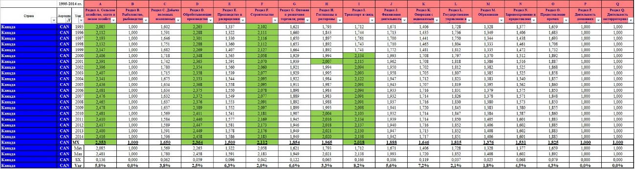 Таблица 2.40 - Межотраслевое моделирование «Развития» экономики государства "Канада"