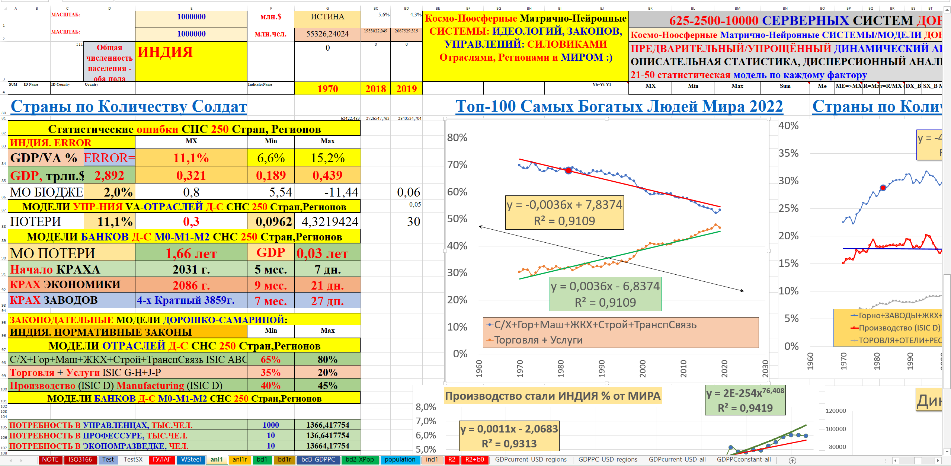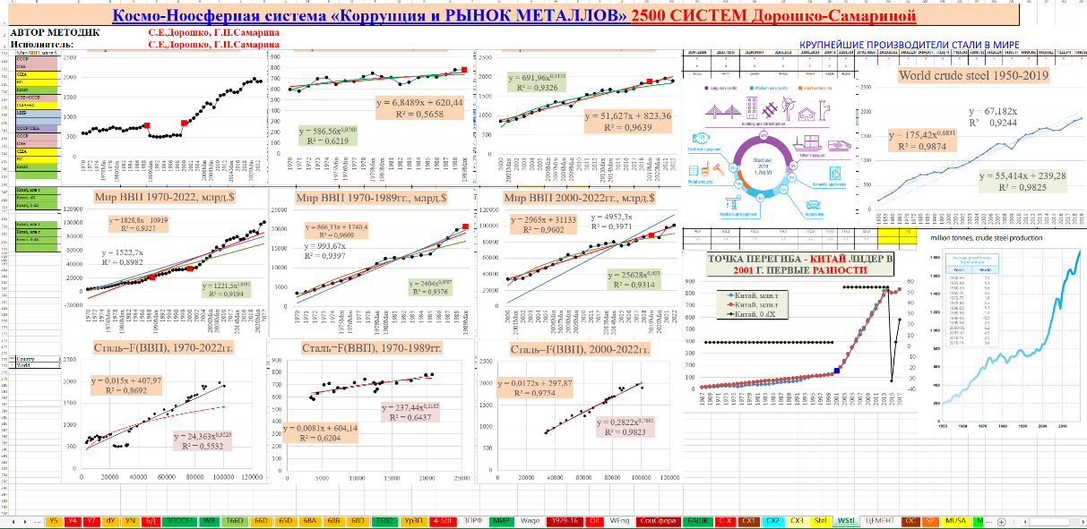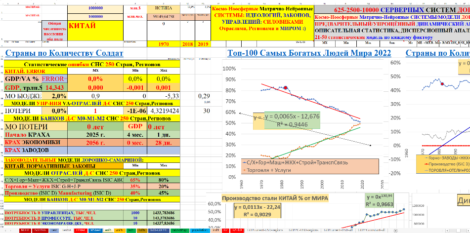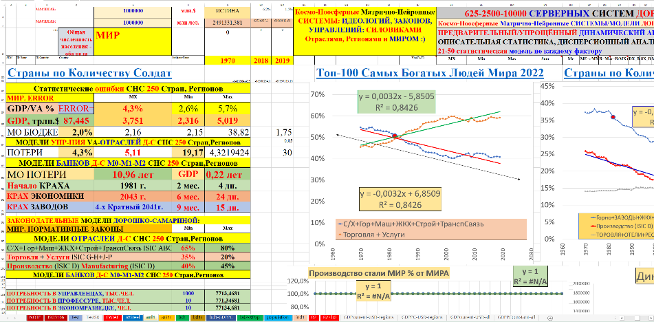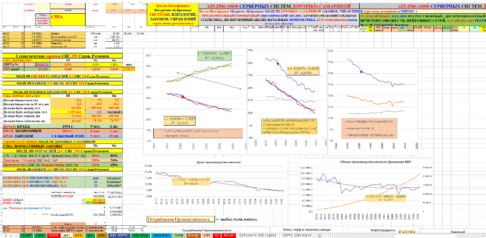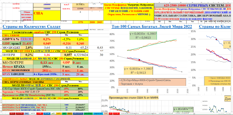 В монографии использованы материалы 30–40-летней давности по космо-ноосферным системам, нейронным геополитическим, геоэкономическим моделям промышленности, тяжёлой промышленности, стали, цемента мировых лидеров СССР-СЭВ, США, стран Западной Европы, «азиатских тигров», Японии, Китая и в целом всех государств-членов ООН. Профессионалам известно, что без стали, цемента и в целом тяжёлой промышленности невозможно космо-ноосферное, социально-экономическое эффективное развитие государства даже с любым безумным политическим строем, любыми политическими партиями. После сионо-фашистского Беловежского приворота это бездарное управление устойчиво наблюдается в США, ЕС в государствах СЭВ и республиках СССР. В космо-ноосферных системах с помощью авторских космо-ноосферных, геополитических, геоэкономических нейронных моделей мирового производства стали, цемента в натуральном, а не виртуальном выражении наглядно и убедительно доказано скрытое уничтожение США, начиная с 1954 года (модели геополитического, геоэкономического креста катастрофы США) и после 1970–1980–1990гг. целенаправленно-откровенная ликвидация США, ЕС, СССР-СЭВ.