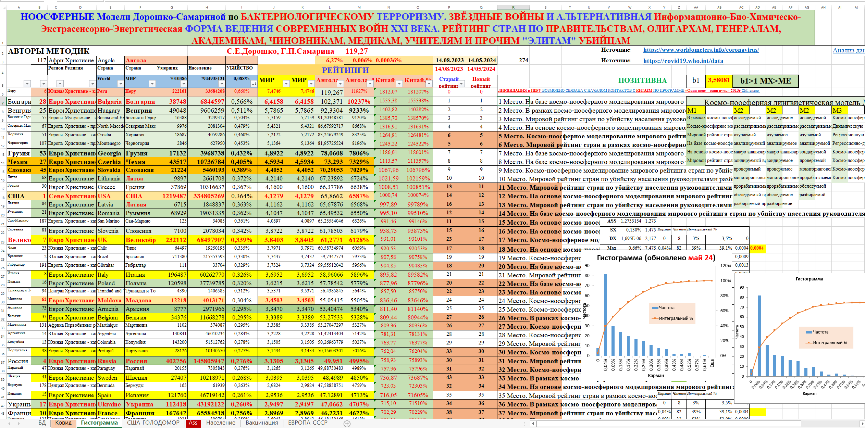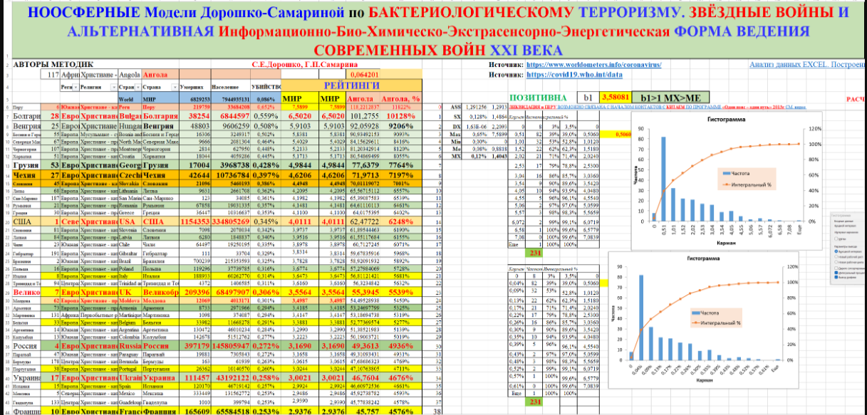 «Космо-ноосферное моделирование мирового рейтинга 230 стран по убийству населения «Испанка №2». Геополитическая, геоэкономическая катастрофа человечества — закрытие проектов-государств ООО США, ООО Европа и ООО РФ и всех республик СССР и государств СЭВ».
