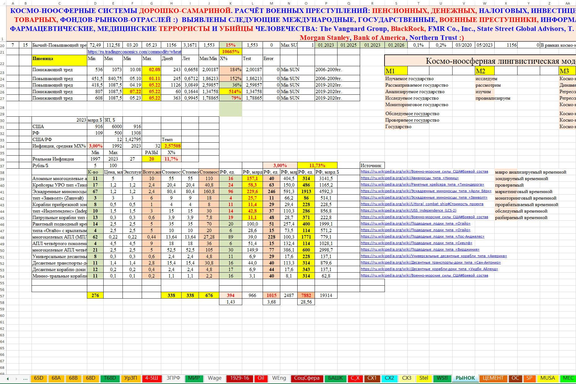 В рамках космо-ноосферных систем Дорошко-Самариной и нейронного моделирования военных преступлений на мировых, региональных и отраслевых рынках: пенсионных, денежных, налоговых, инвестиционных, страховых, фондовых, сырьевых, товарных, валютных, криптовалютных и прочих выявлены следующие международные, государственные, военные преступники, информационные, химические, биологические, фармацевтические, медицинские террористы и убийцы человечества: The Vanguard Group, BlackRock, FMR Co., Inc., State Street Global Advisors, T. Rowe Price Associates, Inc., Geode Capital Management, Morgan Stanley, Bank of America, Northern Trust, …, или около 40-50-ти террористических транснациональных банковских структур.