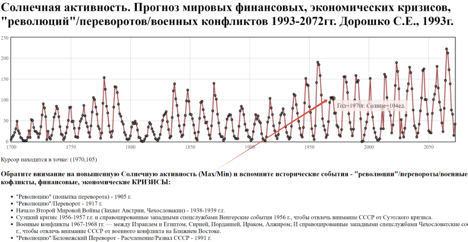 Сделаем важнейший вывод, вытекающий из космо-ноосферного комплекса С.Е.Дорошко, Г.П.Самарина «Ноосферная система «Космос, Солнце и Кризисы» Дорошко-Самариной» (http://economics-21.narod.ru/Book/book-17/b17.html#ds01), что климатические изменения, вызванные различными солнечными циклами, появление Эль-Ни́ньо в Южной Америке, приводят к катаклизмам на всей территории Земли !!! (http://economics-21.narod.ru/Book/book-17/b17.html#ds01, а не только в СССР и конкретно на Украине.