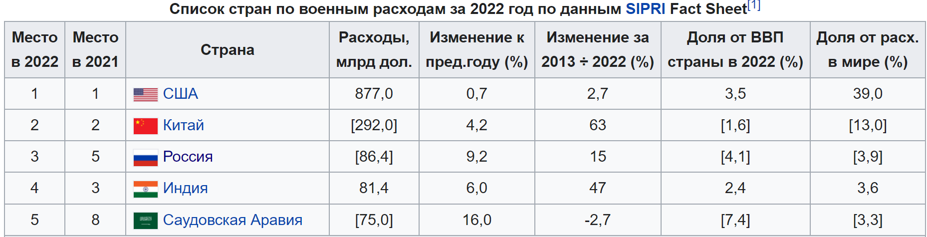 Уточнение безграмотного рейтинга стран по военным расходам.