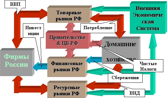 Экономическая система представлена тремя хозяйствующими субъектами (см. рис. 1): фирмы России, правительство и домашние хозяйства.