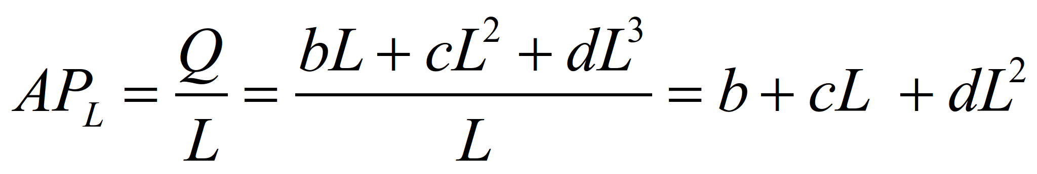 По аналогии с функцией спроса, производственная функция может быть представлена в виде таблицы, графически или аналитически в виде следующего уравнения: